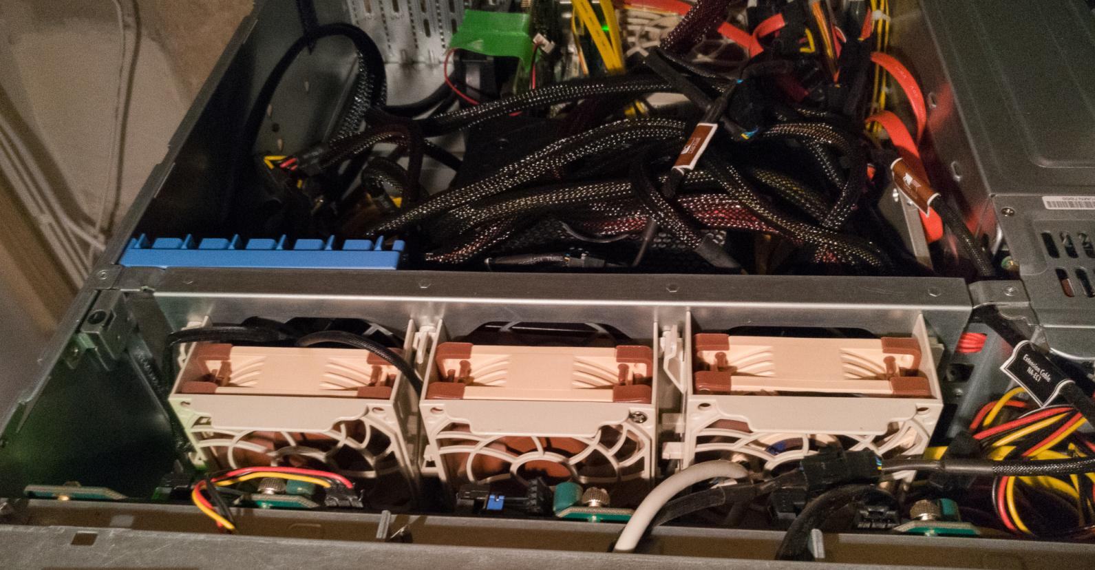 ich habe eine NAS in einem Supermicro SC836 Gehäuse. Da dieses Teil bekanntlich laut ist wie ein lauter Staubsauger, habe ich die Lüfter gegen NF-A8 PWM ausgetauscht und verwende anstatt der redundanten Netzteile ein normales ATX-Netzteil.