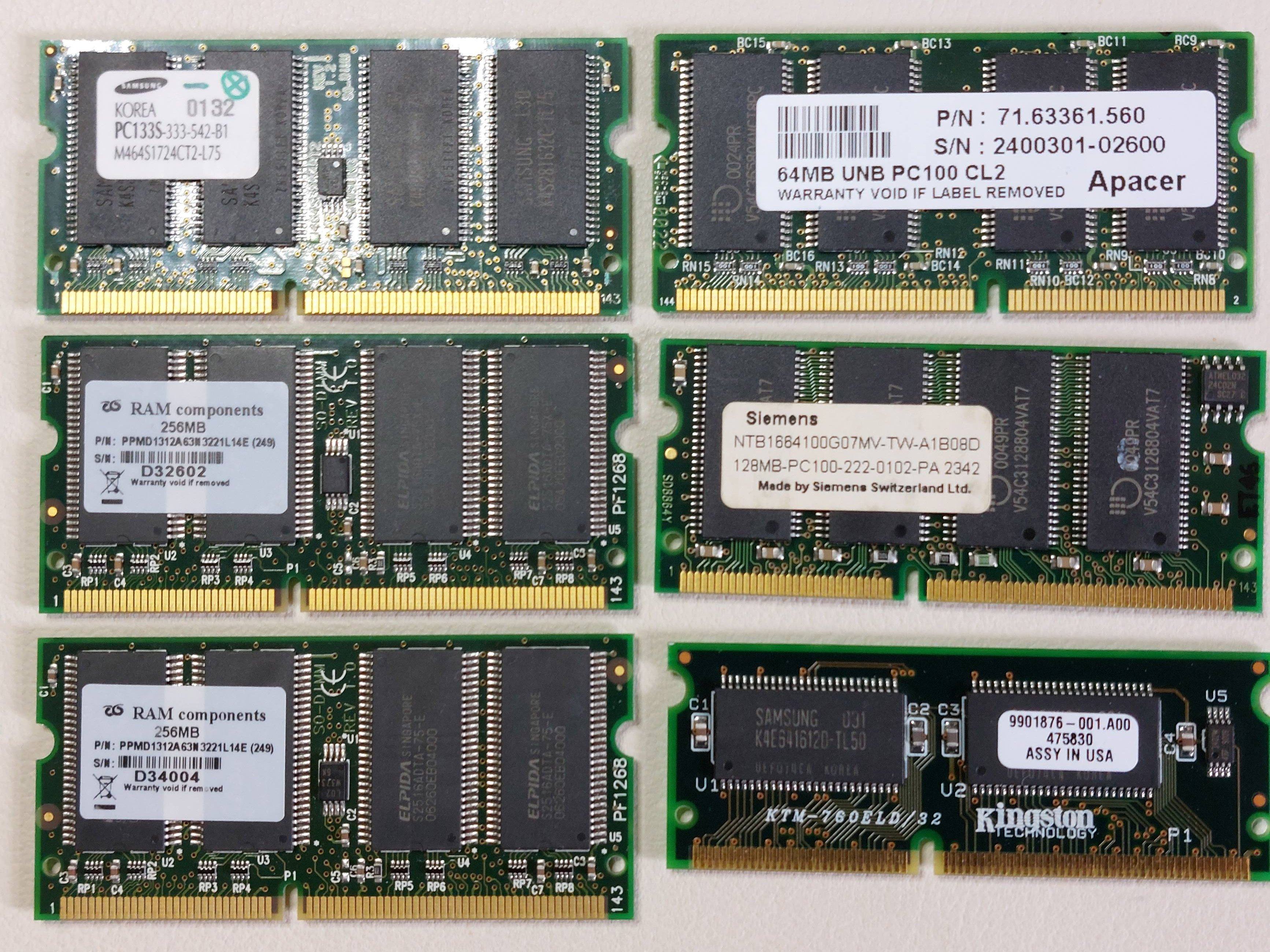 SD-RAM als SO-DIMM mit 144 PIN , CL2 . Nicht so easy zu bekommen, wie ich dachte, oft gesehen zu absurden Preisen, aber evtl liegt so etwas ja bei jdm rum.