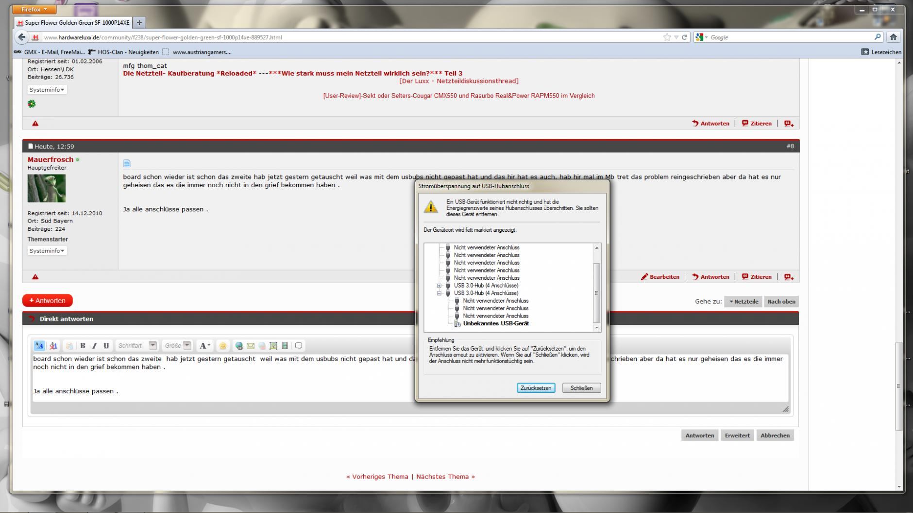 Habe hir das Golden Green SF-1000P14XE Vers.2.92 80+GOLD das zicken macht, es geht immer bei einem neustart vom Pc aus und dann wieder an.