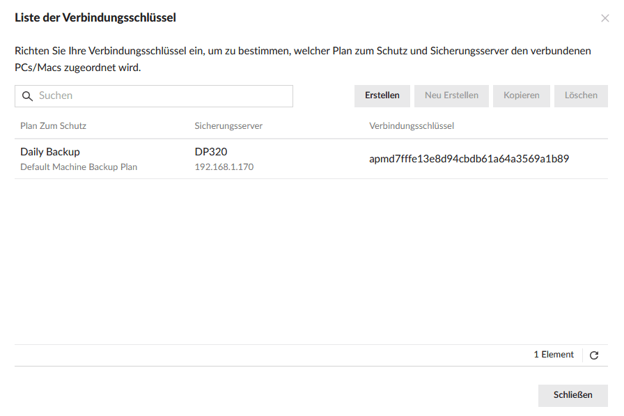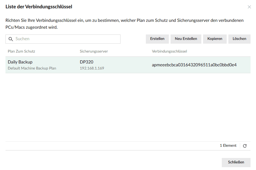 Die sogenannten "Verbindungsschlüssel", die bei der Konfiguraton des Clients zum Einsatz kommen, dienen lediglich zur Authentifizierung der Verbindung zwischen dem ActiveProtect-Agent und dem Backup-Server. Diese Verbindung widerum wird per https mit einem einstellbaren Zertifikat abgesichert. Es gibt also eine Transportverschlüsselung.