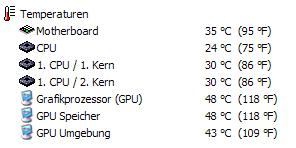 ich hab mal ne Frage... Wird nicht normalerweise die Temperatur der Festplatten angezeigt!? Ich hab die festplatten im Raid 0 hängen und bekomm keine Temperatur angezeigt ? Ist das immer wenn man sie im raid hat ?! oder muss ich noch irgendwas machen ?!