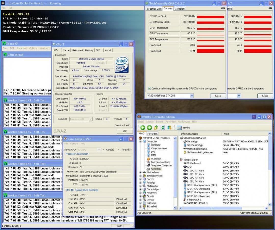 CPU: Intel QX6850 @ 3,00 Ghz nicht übertaktet.