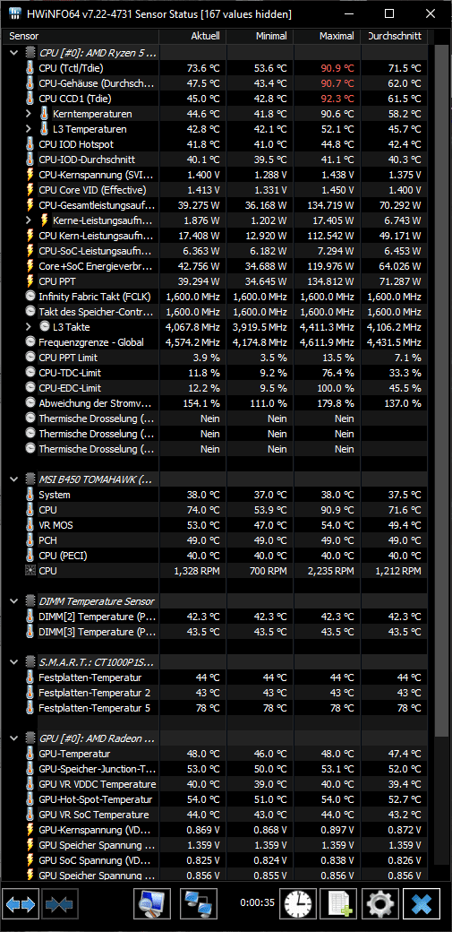 Man achte bei dem Bild auf die Zeit, die wurde nicht zurückgesetzt. HWInfo gestartet, Prime 95 ebenfalls, danach direkt wieder beendet. Eventuell kann einer von dem Screenshot irgendwas erkennen, was ich nicht konnte.