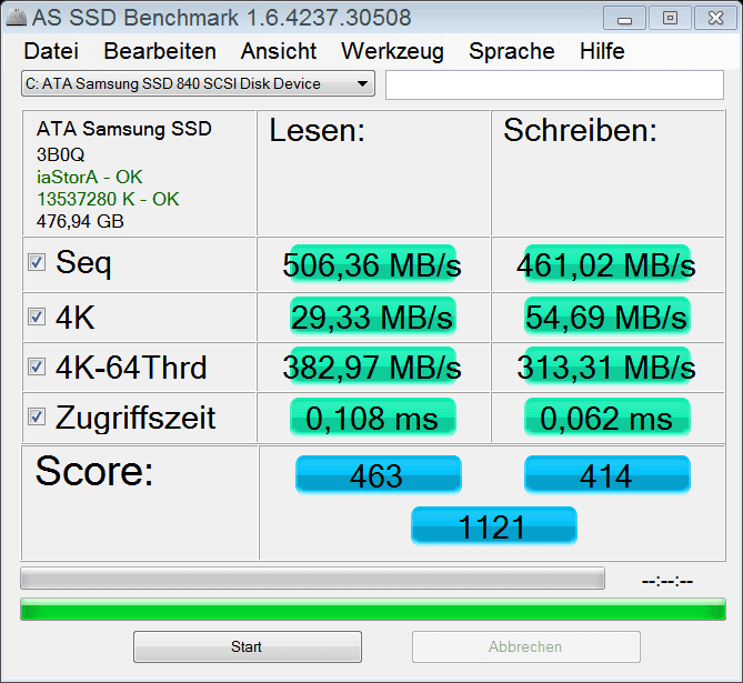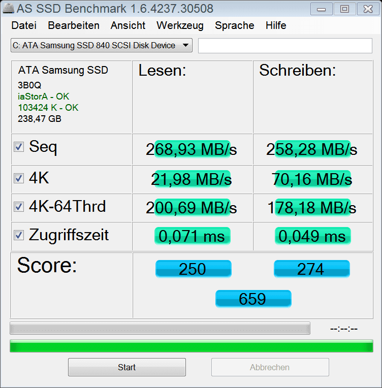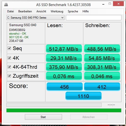 natürlich gut fühlt wenn der score möglichst hoch ist, klar, man will ja die bestätigung das die investition sich gelohnt hat, auch das ist vollkommen ok aber bitte im hinterkopf behalten, ein doppelt so hoher score bedeutet nicht das die SSD auch doppelt so schnell ist oder real überhaupt schneller sein muss bzw zwingend bedeutet das eine SSD mit niedrigerem score real auch wirklich langsamer ist).