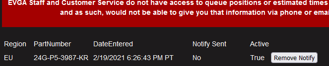 Gut zu wissen, dass EVGA sich super an ihre eigenen Aussage hält, dass der Reihe nach abgearbeitet wird.Ein einziges Trauerspiel, lol.