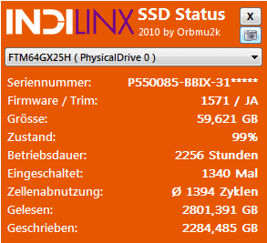 Das Tool geht bei mir leider nicht (Vista X64), habe die OCZ Vertex im Einsatz.