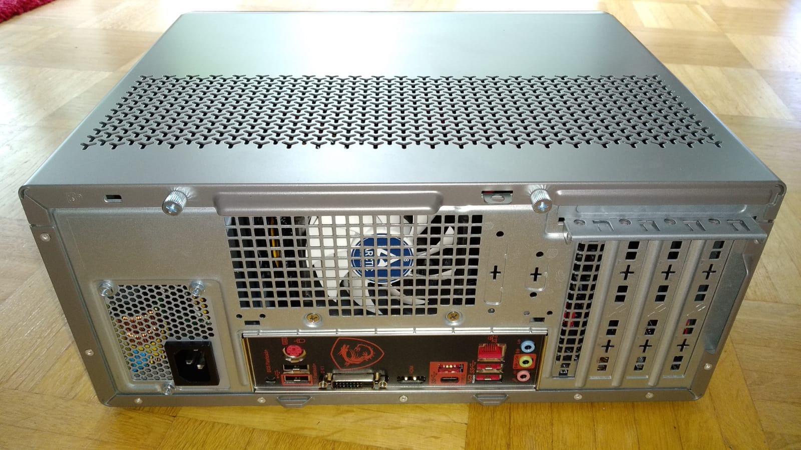 Das Case liegt und so wird es auch bleiben. Ich habe mich jetzt für den Noctua NH-L12S entschieden. Der Lüfter wird unter dem Kühler befestigt und die warme Luft aus dem Case befördern. Der 80mm im Heck bläst dann in das Case rein.