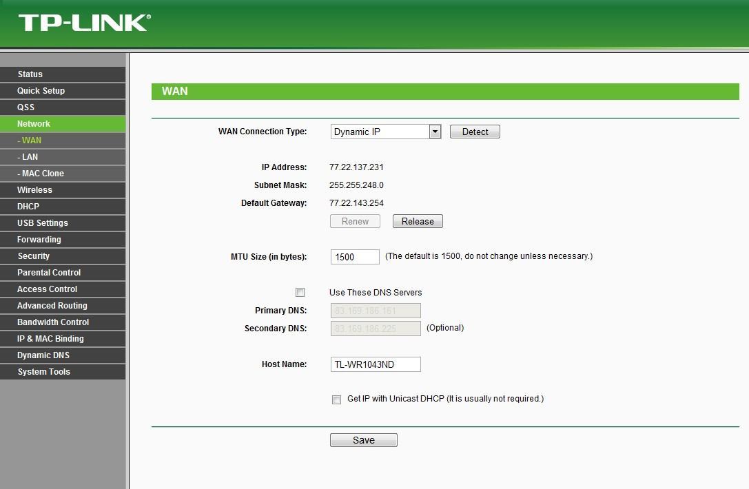 Ich habe einen Internet-Anschluss von Kabel-Deutschland (32Mbit). Der WR1043ND wurde gegen einen D-Link DIR-300 getauscht.