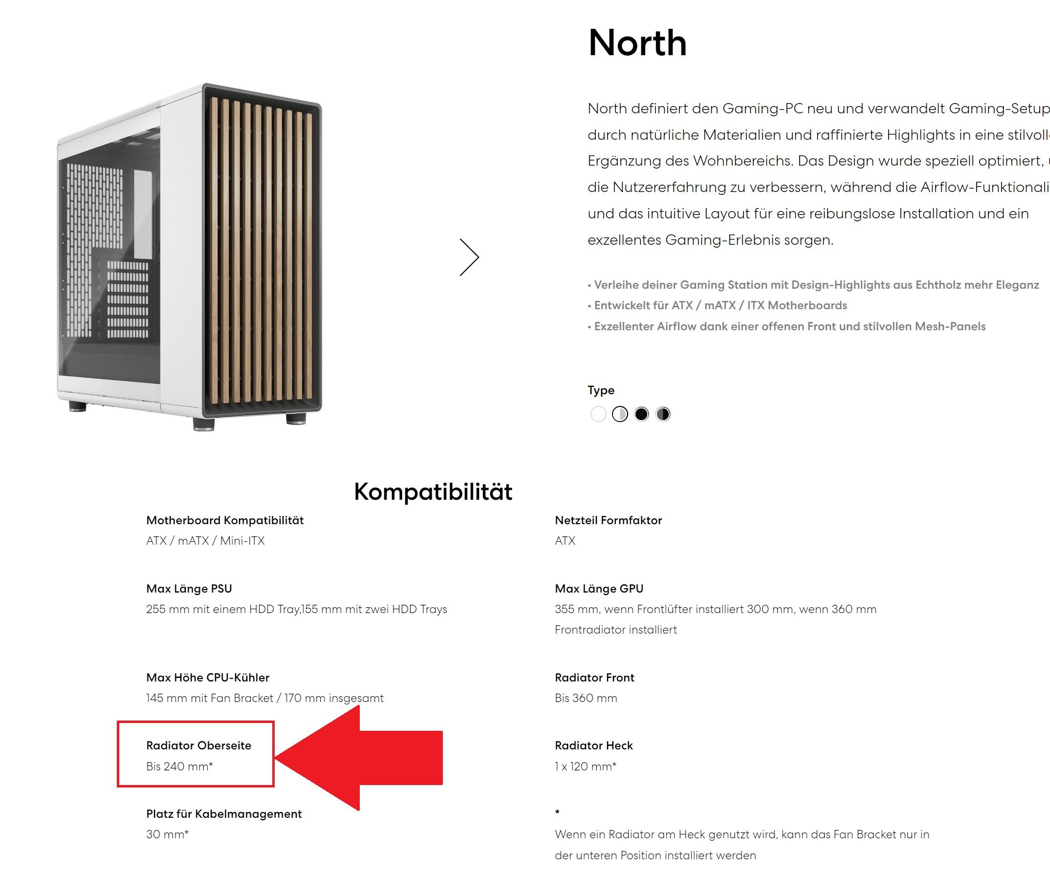 Das Fractal Design North Chalk White TG Clear kannst du wieder Stornieren, weil der 280 Radiator oben nicht passt.