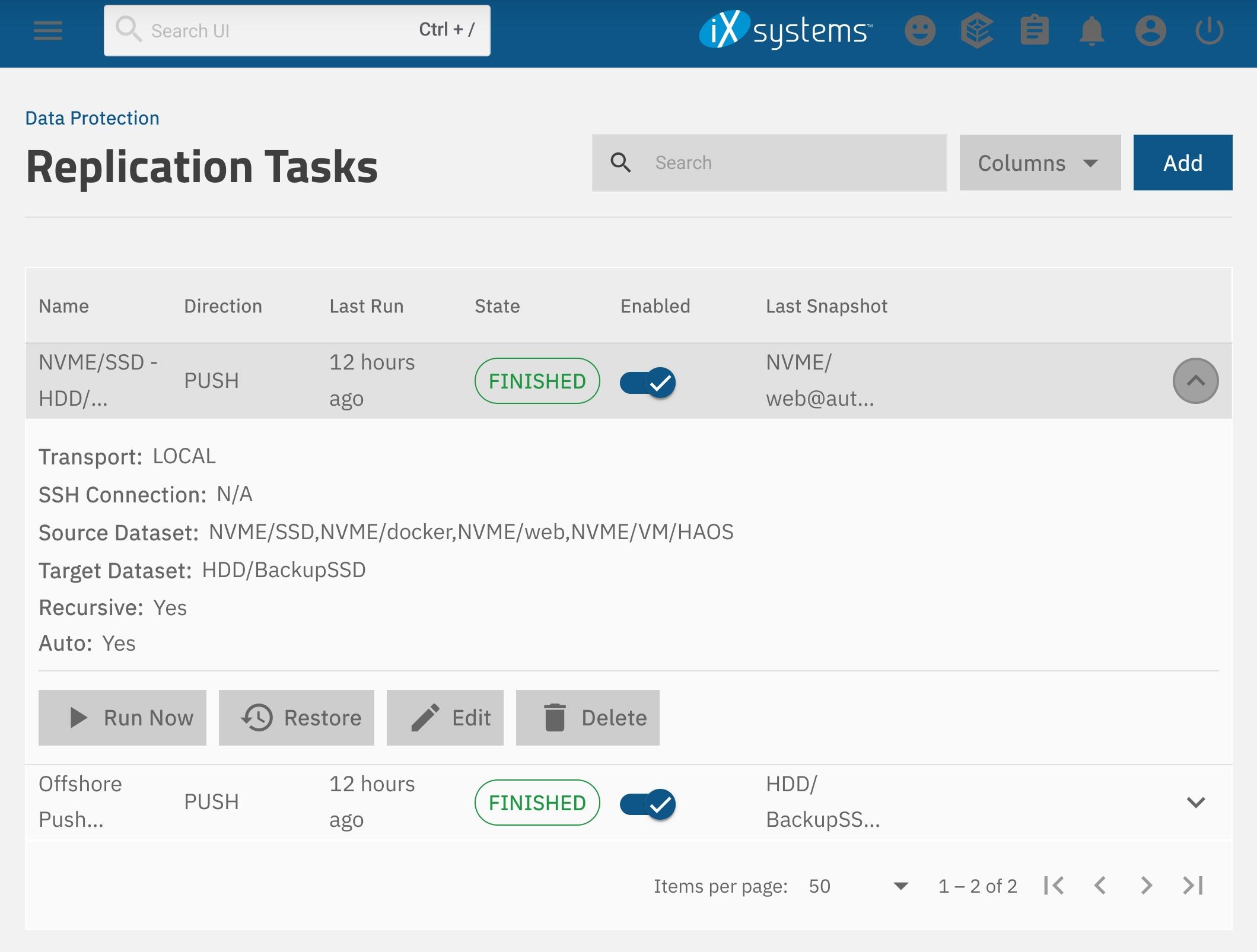 Hab das gestern noch getestet. 2 Test-Datasets erstellt. Replikationsjob von der NVMe nach HDD-Pool erstellt.