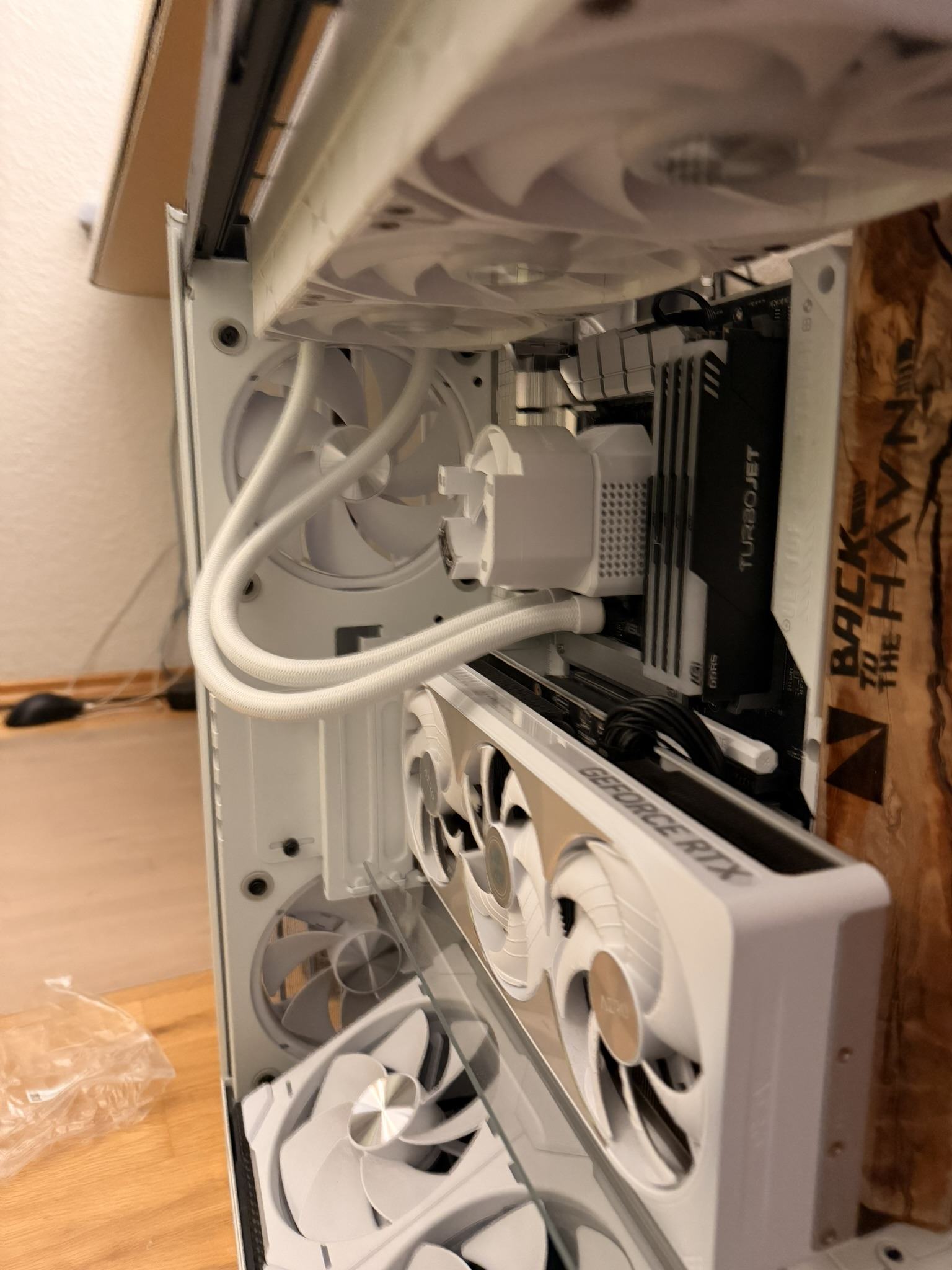 - Die Schläuche sind 400mm lang und reichen bei mir im Aufbau gut. Durch die Montage der Schläuche am unteren Rand der Pumpe stören die Schläuche minimal das Erscheinungsbild, man ist auch etwas eingeschränkt in der Platzierung der Ausrichtung des Radiators, aber das ist bei AiO ja eher die Norm als die Ausnahme.