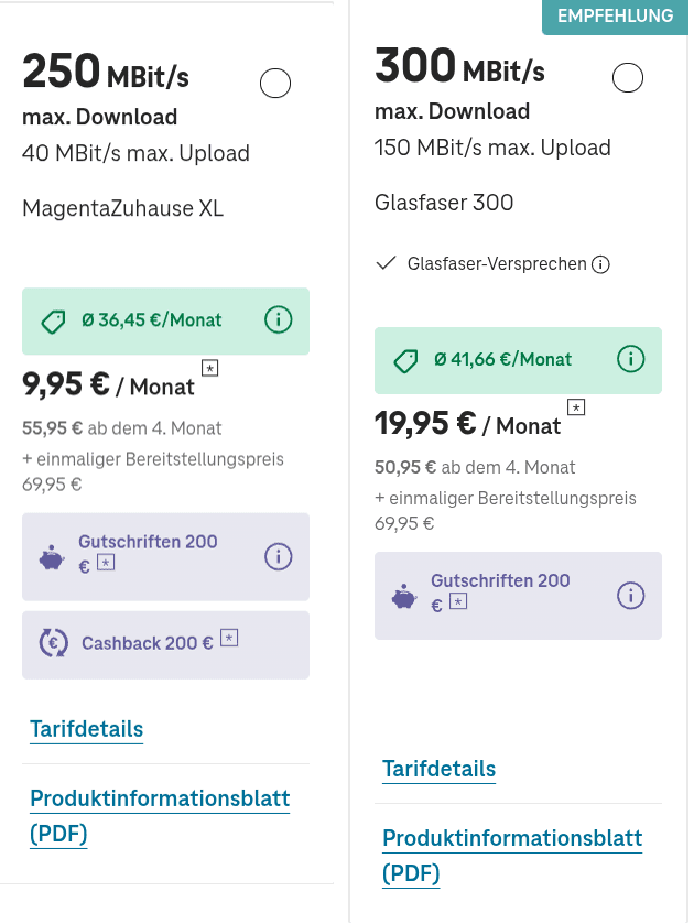 Hauptsache die Kohle aus deiner und meiner Tasche ist raus. 100/50 ist out. Jetzt machen sie 150/75. Für 46€/Monat... Aktuell der Einstieg bei der Telekom, wenn man zwangsabgeschaltet wäre. Absolut egal, ob man das irgendwie verwerten kann. November 2020 bei O2 lag der DSL-Einstieg 13 Monate lang bei 25€, danach 35€.