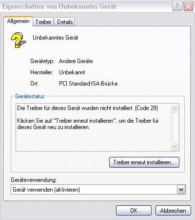 Das zweite Problem ist ein unbekanntes Gerät im Geräte Manager. Was zur Hölle kann das sein (siehe Screens)?? Southbridge Treiber hab ich installiert.