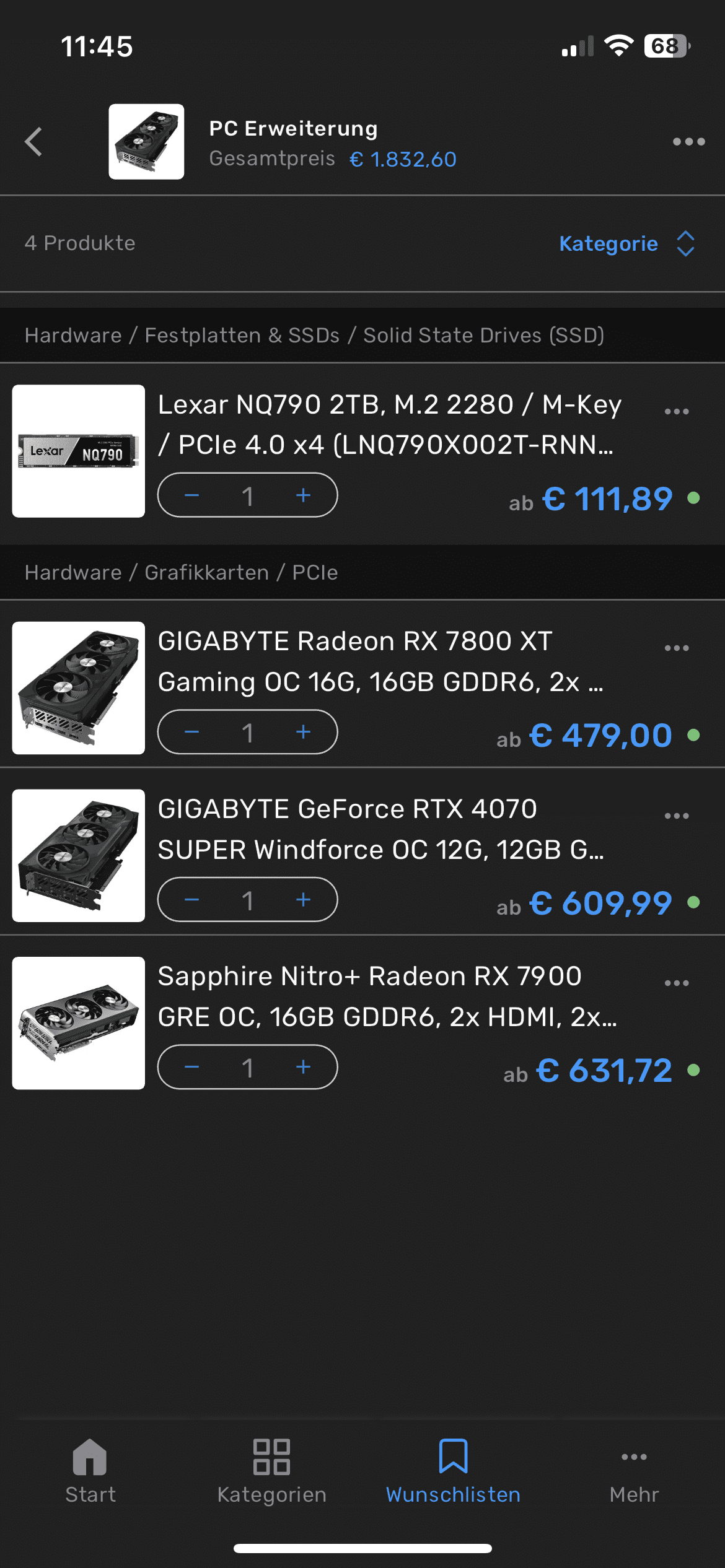 Da uns leider ein Umzug dazwischenkommt und ich auch das Budget aufstocken will, wird das wohl erst im neuen Jahr zur Anschaffung kommen, aber ich hab mir schon grob die Objekte der Begierde ausgeguckt. Tendiere zum AM5 System aufgrund späterer Aufrüstbarkeit. Den Fehler hatte ich damals mit dem Sockel 1151 und meinem Board gemacht, wo ich maximal von I5-7600 auf I7-7700K upgraden könnte. Das will ich umgehen.