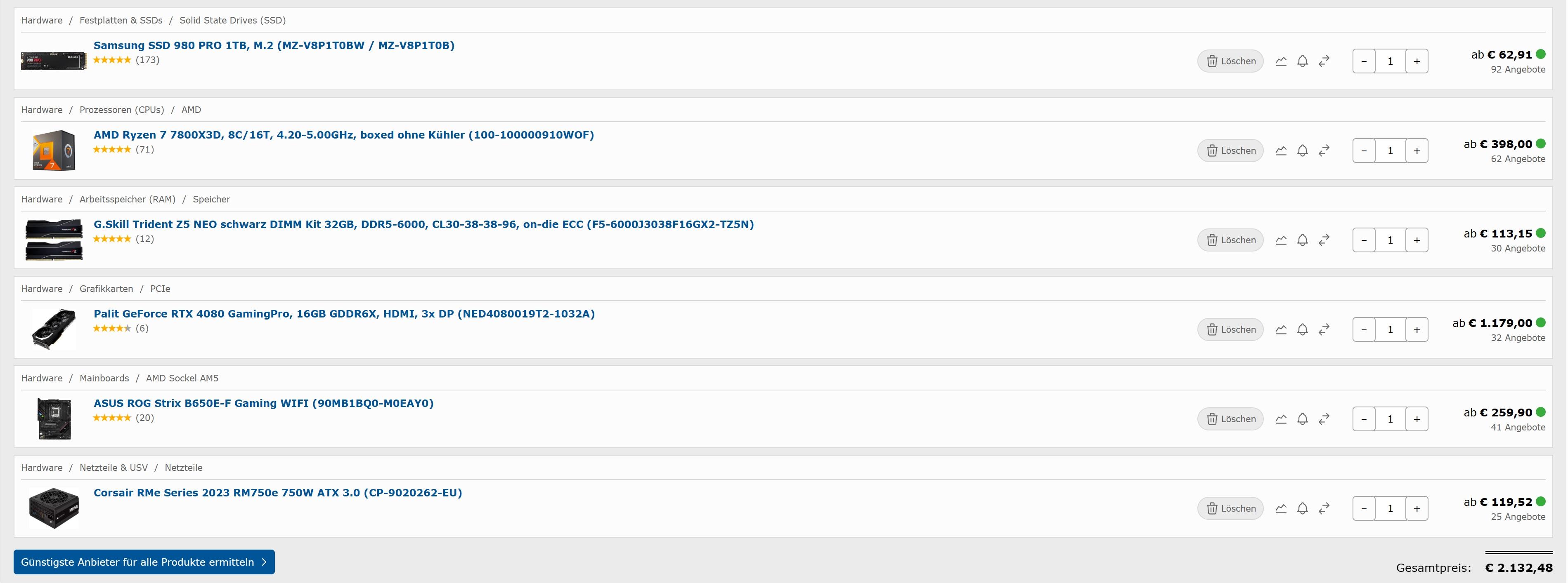Die 40€ für 1TB NVME sollte man auch noch haben.