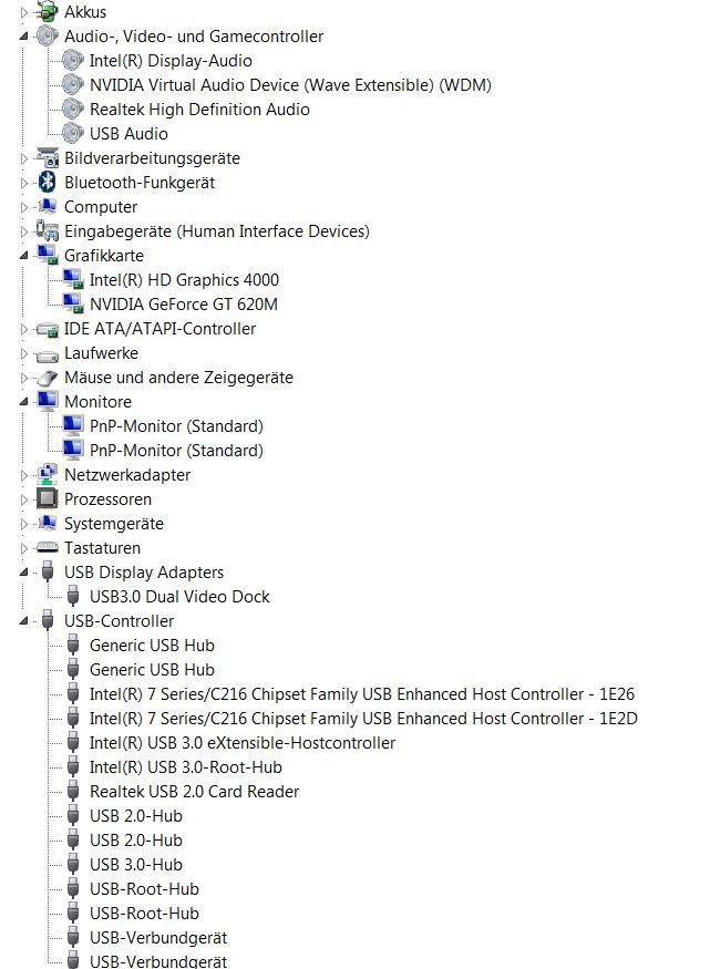 Aus- und wiedereinstecken des USB Kabels bringt nichts. Einzig die Docking Station vom Strom zu trennen (separates Netzteil) oder ein Neustart des Laptops bringt sie wieder zum laufen. Dann erkennt Windows zumindest die Station, lange Freude hat man daran allerdings nicht - das Spiel beginnt von vorn.