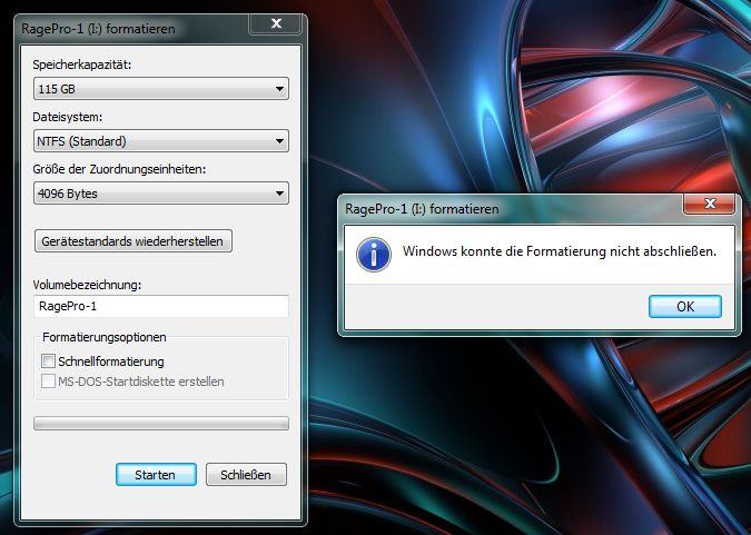 ...weder unter win7 oder win11 - fehlermeldung ist jedesmal, windows konnte die formatierung nicht abschließen