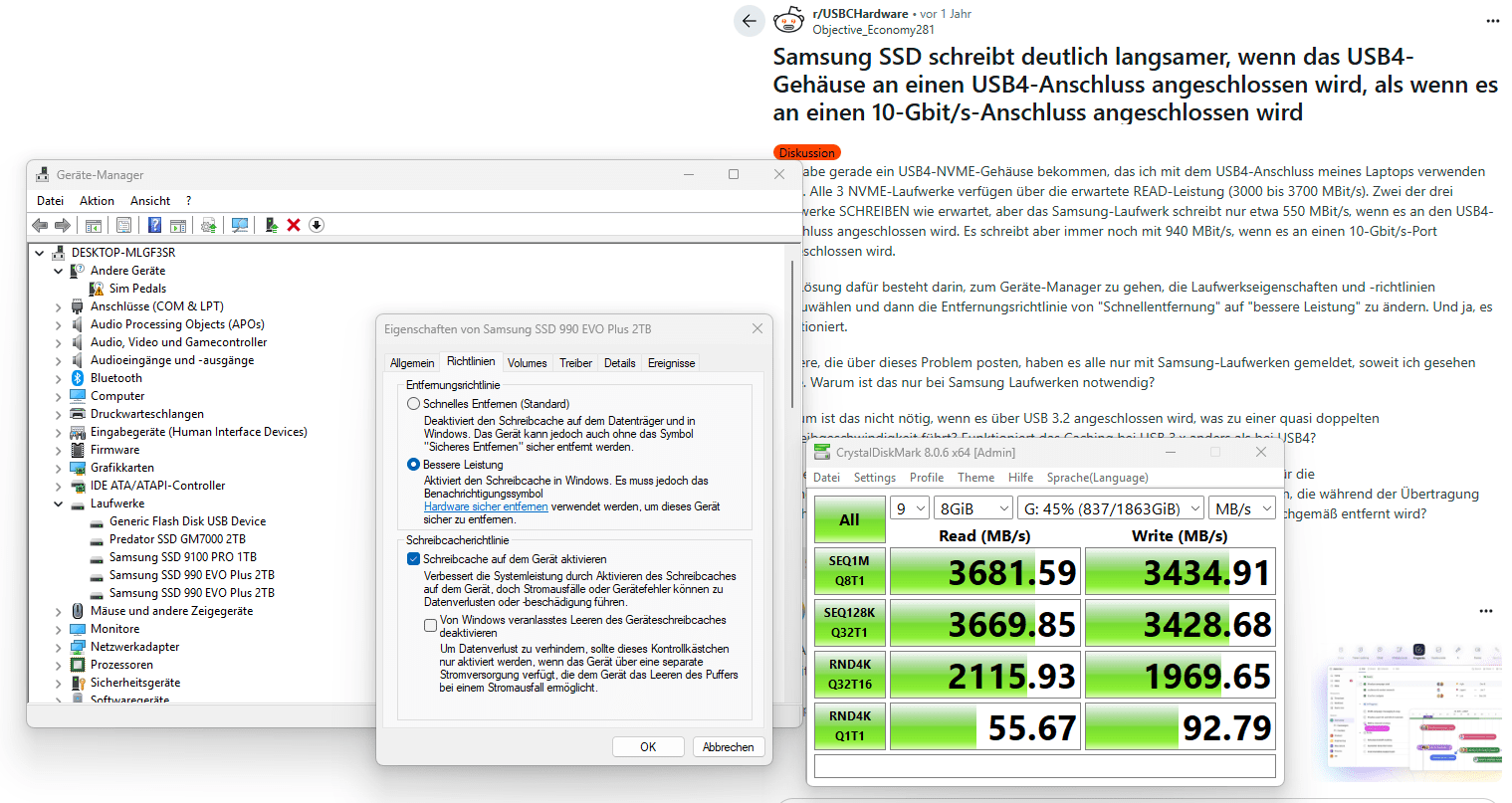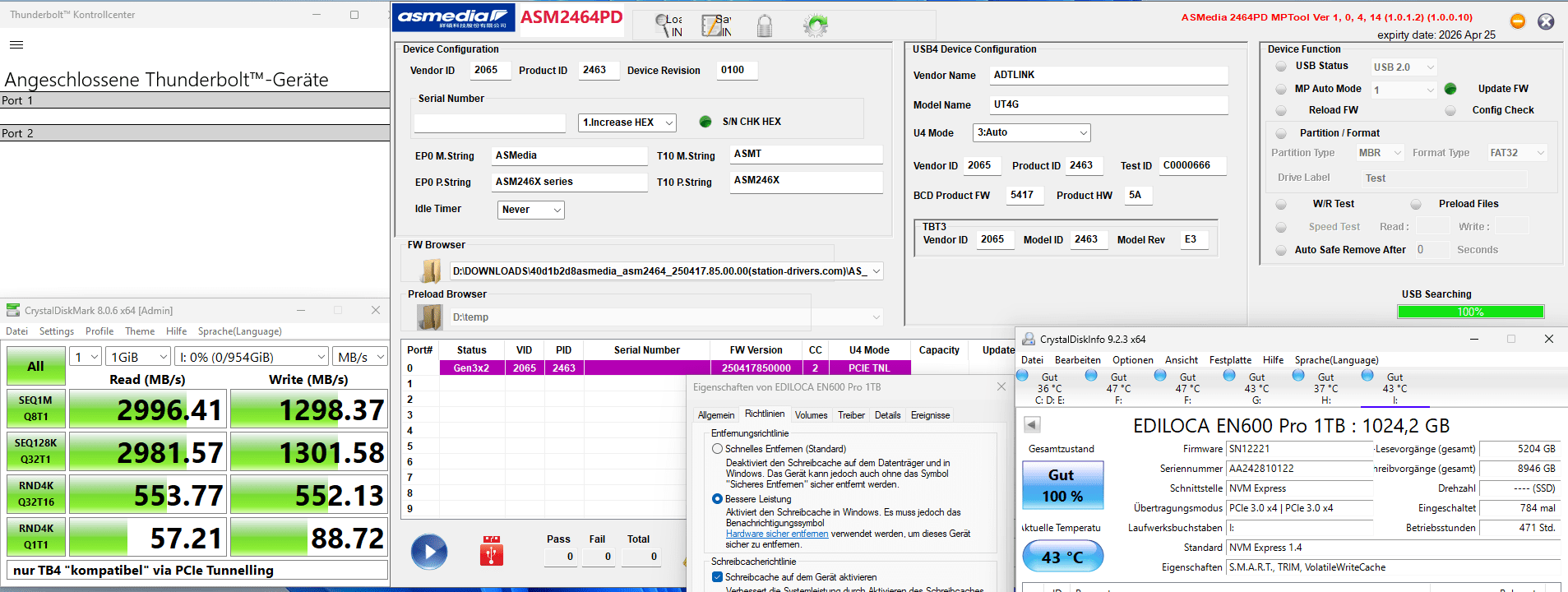 An meinen Mainboard mit x870e Chipsatz kommt der 40G USB Anschluss nicht auf Geschwindigkeit.