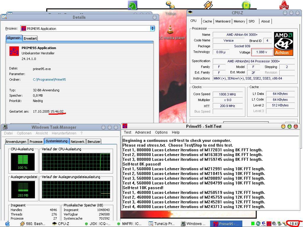 Und das ist auch nur ein mittelmäßiger 3000er. Ich schätze, die richtig guten 3000er, die knapp 3 GHz rennen, dürften das mit noch viel weniger Spannung schaffen. Ich denke, 0.85-0.90V wären da nicht unrealistisch. Müßte man mal einen Besitzer eines 3 GHz 3000+ Venice fragen.