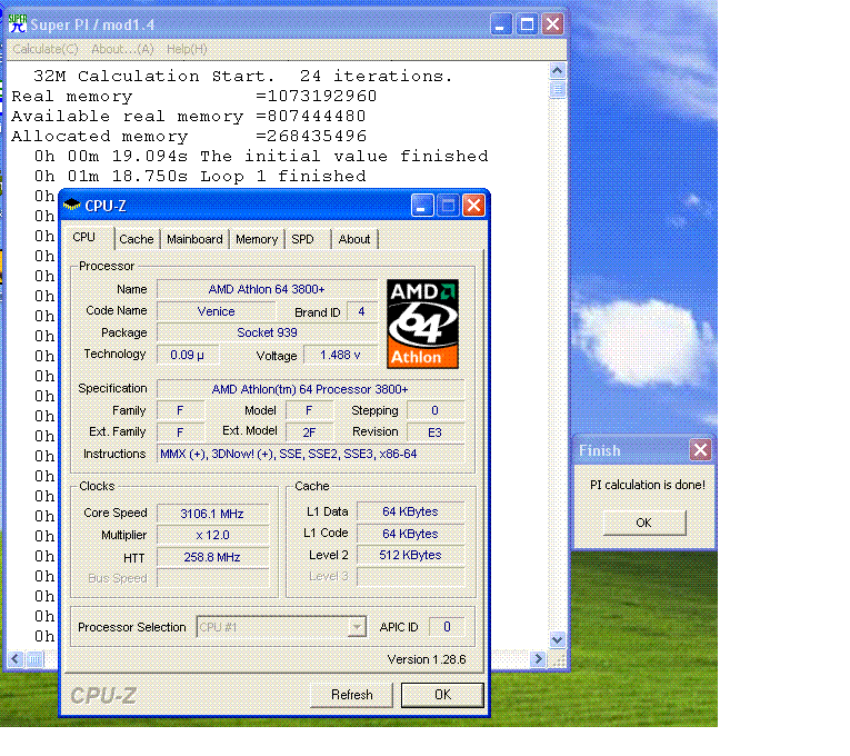 Erster Versuch 32m Superpi Mod ( alles noch Safe um die Cpu nicht von anderen Komponenten zu beeinflussen ) .