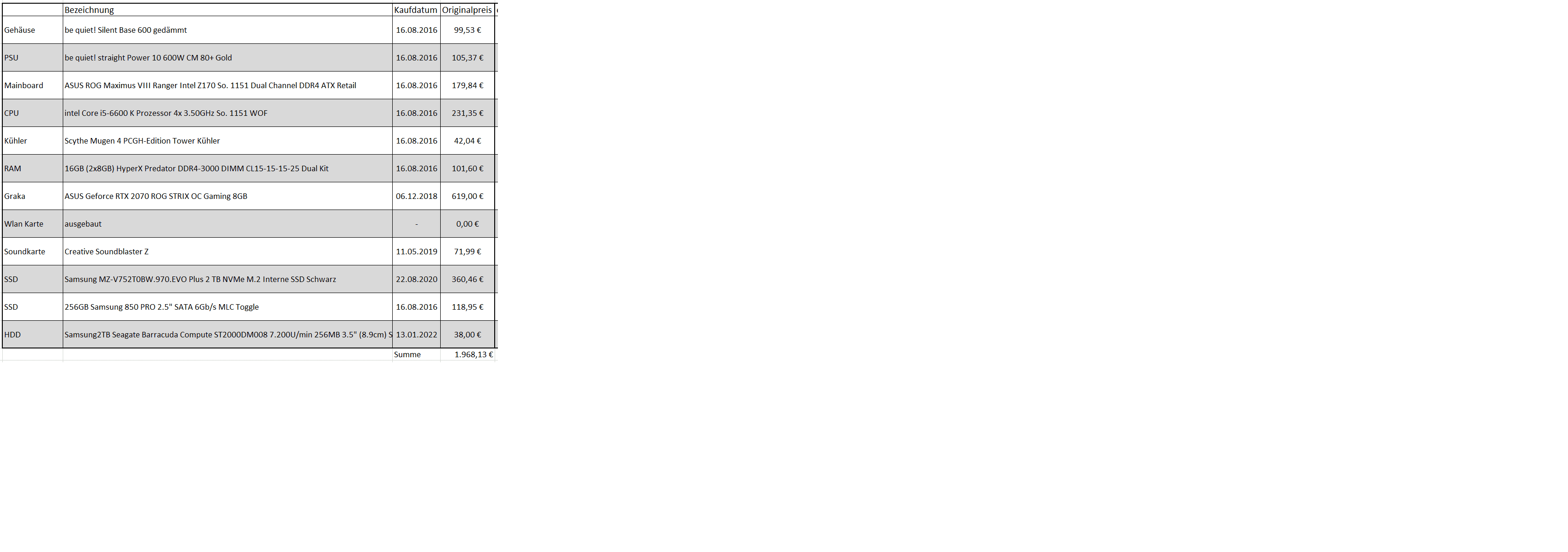 ich würde gerne meinen PC an meinen Schwager verkaufen und habe keine Ahnung was dieser noch wert ist. Er läuft einwandfrei und ich spiele aktuelle Titel wie Cyberpunk 2077 auf "HIGH" Einstellungen.