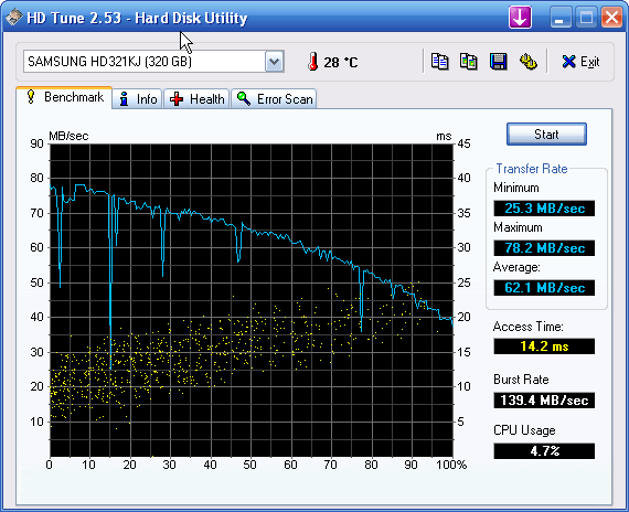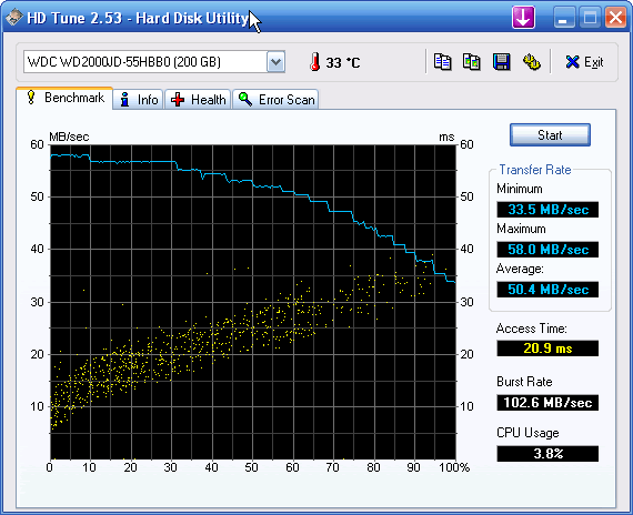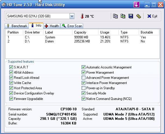ich habe ein Problem mit meinen Festplatten. In meinem System laufen eine Samsung Spinpoint T166 (HD321KJ mit 320GB) und zwei Western Digital WD2000JD-55HBB0 (200GB) auf einem DS3-Mainboard von Gigabyte (Rev 3.3). Was mir – bei einem Test mit HDTune – jetzt erst aufgefallen ist, dass die Platten alle im UDMA Mode 5 laufen, obwohl mehr möglich wäre (Mode 6 bei den Western Digital, bei der Samsung sogar Mode 7). Screenshots der HDTune-Info und -Benchmarks habe ich mal angehängt.