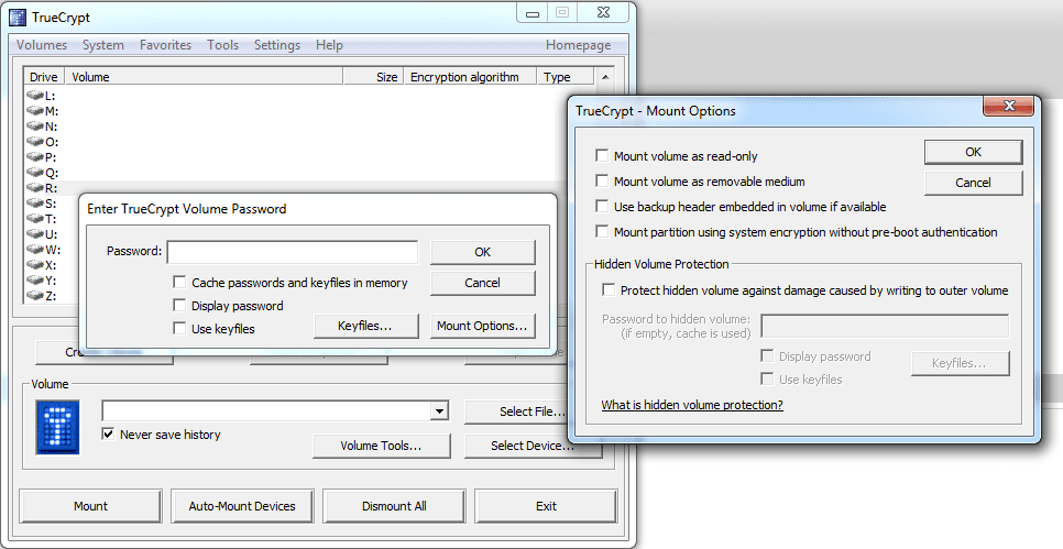 Systeme die man mit TrueCrypt Verschlüsselt ( System Drives ) kann man NUR während Bootvorgang mounten.