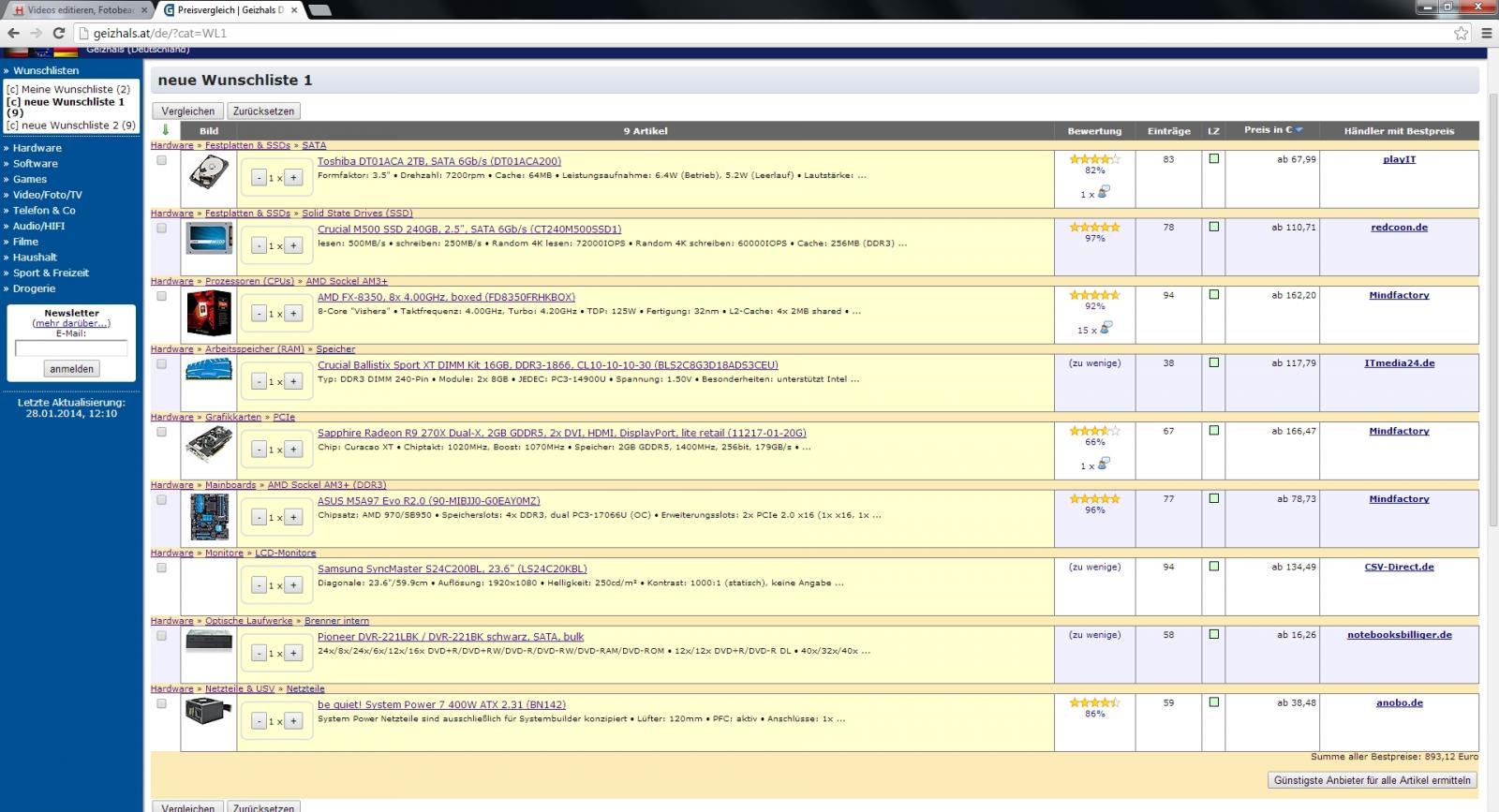 150€ ueber Budget, immer noch keine 2. HDD drin.