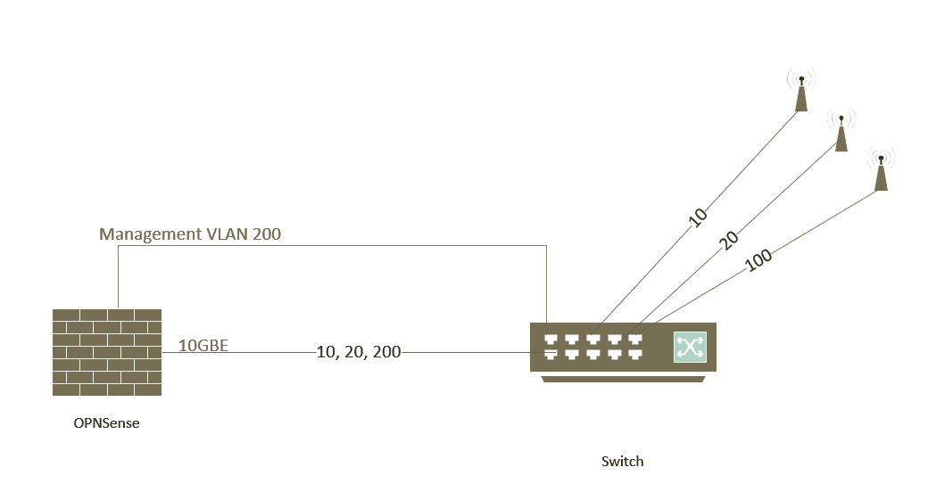 OPNsense --- 10G DAC ---> Aruba Instant On 1930 ------ 1G PoE Injektor ----> 4x Aruba AP22