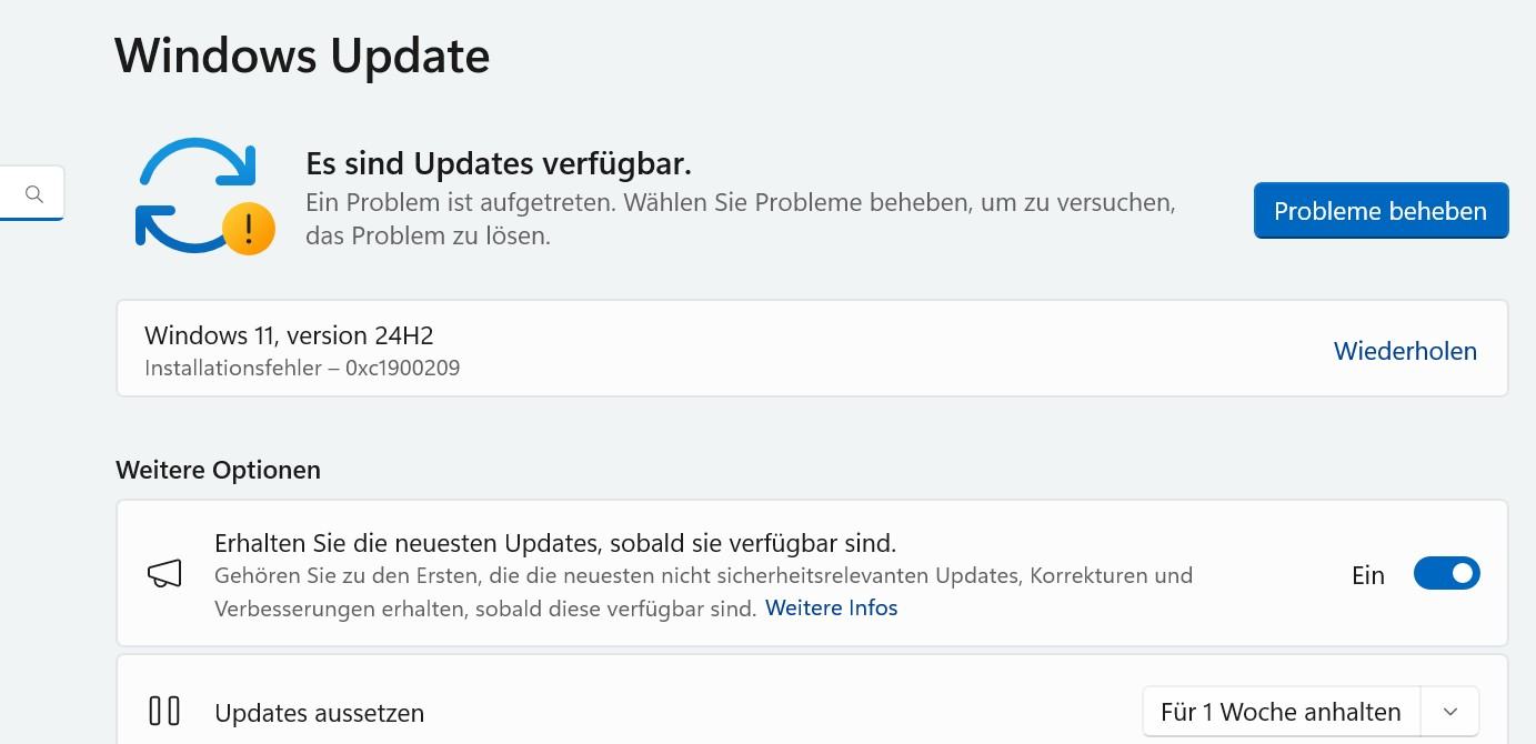 Auf dem Hauptrechner scheitert das Update auf 24H2 nach wie vor!