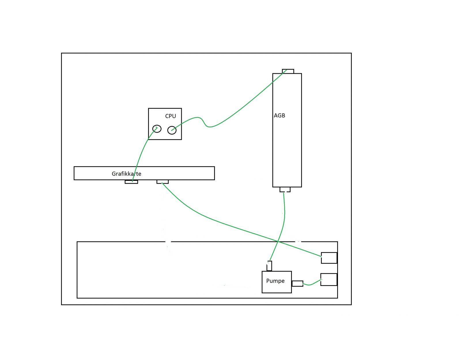 Ok, entgegen meiner Vermutung ist der Ausgang der Pumpe OBEN, also ist das auf deiner Zeichnung richtig und bei meiner falsch. Das oben der Ausgang ist liegt auch auf der Hand wenn man sich die Bilder bei AT von DC220 + AGB Kombo anschaut wo der AGB ja an der Seite hängt. Ansonsten kannste das auch in 5 sec googlen "Phobya DC220 Eingang Ausgang".