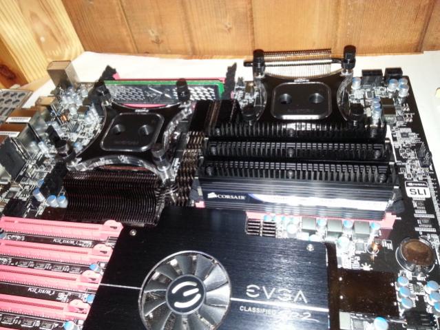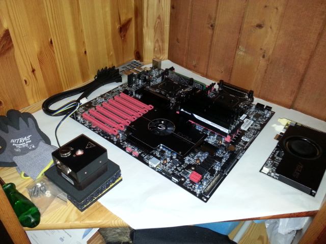 Weiter bin ich gestern nicht mehr gekommen. Hatte leider nen Leck am Schott vom Mora kommend, da die Gewinde der AT-Schraubis zu lang ist und die Gummidichtung nicht abgedichtet hat :shake: , aber das gehört als Wakü-Neuling auch mal dazu:d