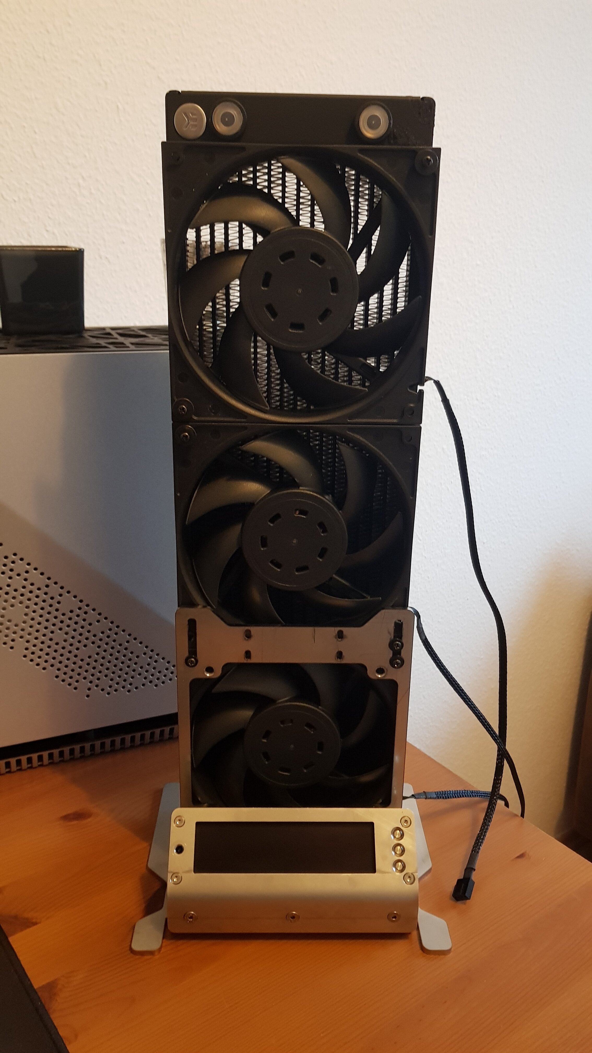 Ja ist Edelstahl und trotzdem unterschätzst du den Hebelarm wohl etwas. Wenn du da nur einen 120er Radiator draufschrauben würdest, würde nix „wackeln“, aber bei einem 360er oder 480er oder gar 560er Radiator hast du so einen langen Hebelarm, dass es eben nicht mehr ganz so stabil wirkt. Es liegt an der Konstruktion die den Radiator einfach durch eine Biegung (Abkantung) hält und keine zusätzliche Abstützung hat.Es handelt sich um Edelstahl, da wackelt mMn nichts bei 2mm.