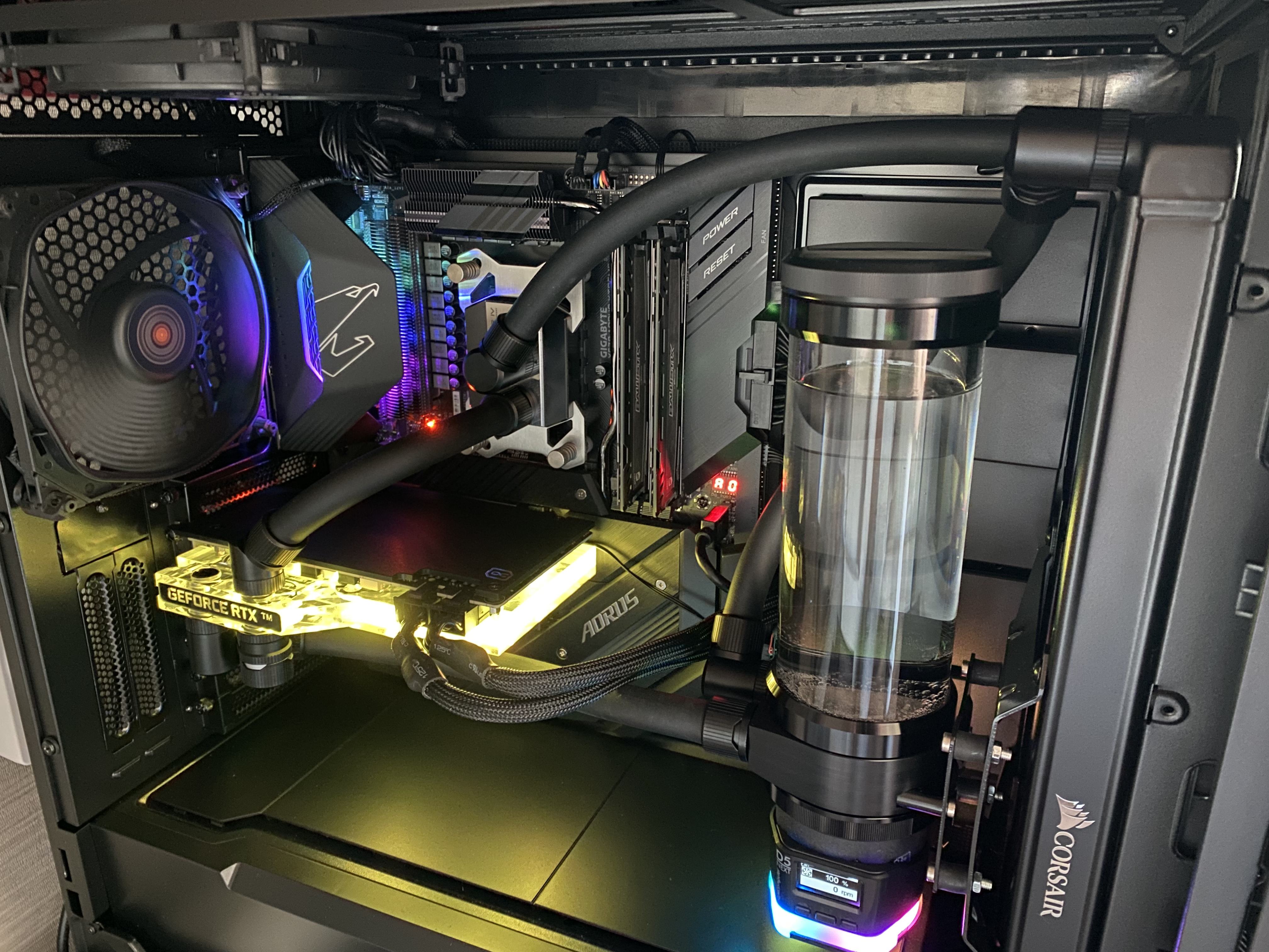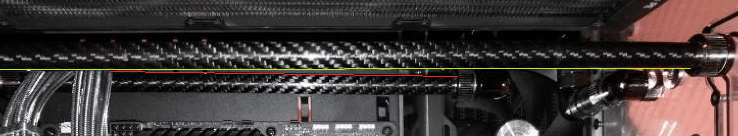 Vielleicht mach ich beim Winkel ne Schottverschaubung und leg die Leitung hinter dem motherboard-tray lang. Würde glaub ich ganz cool aussehen. Muss nur rausfinden, in welchem Winkel das zueinander steht. Auf den ersten Blick 30 oder 45°, hoffentlich nix komisches dazwischen.