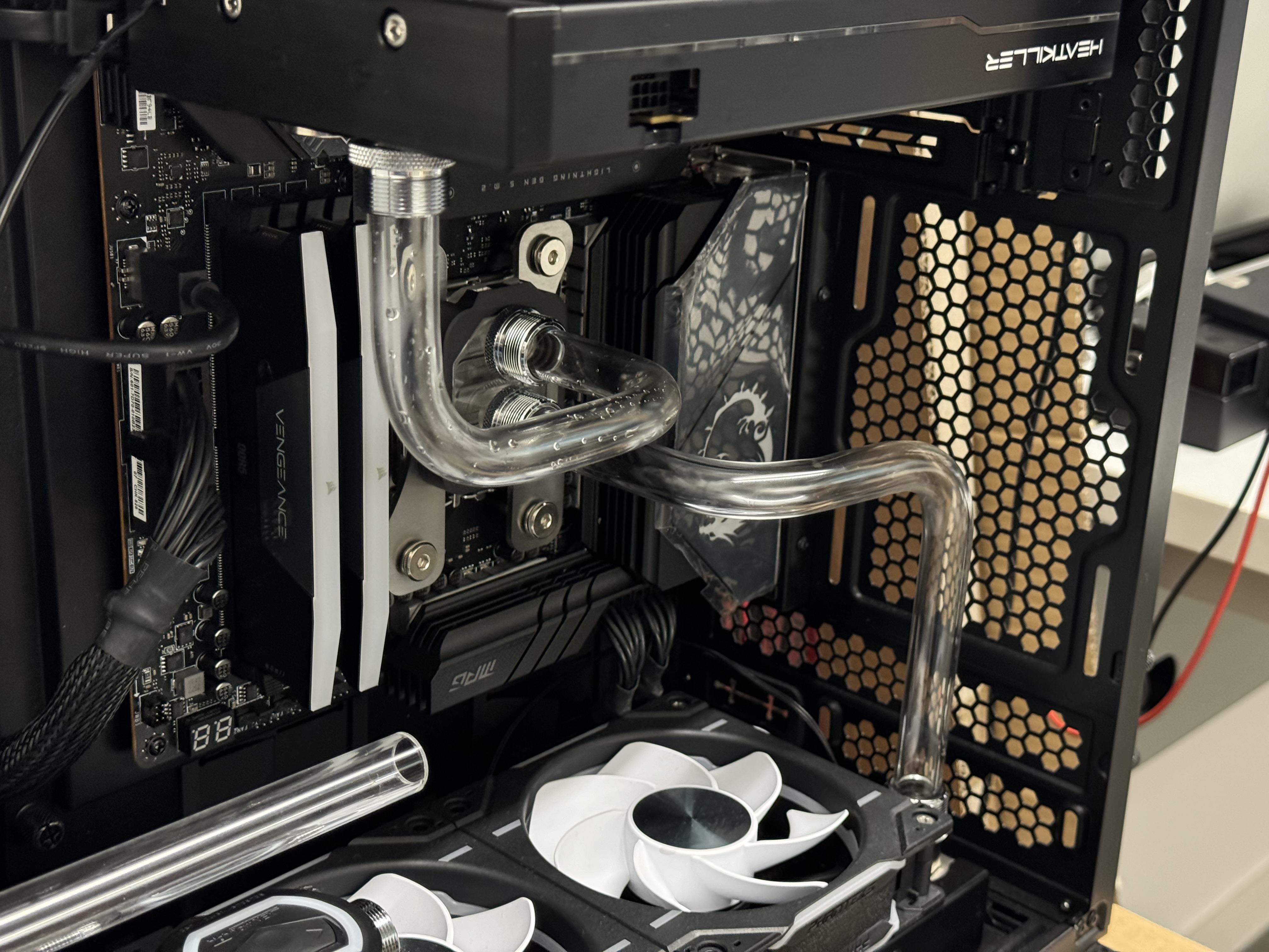 Damit konnten dann die Biegungen für die Verbindung zwischen Radiator und CPU-Kühler nah genug beieinander liegen.