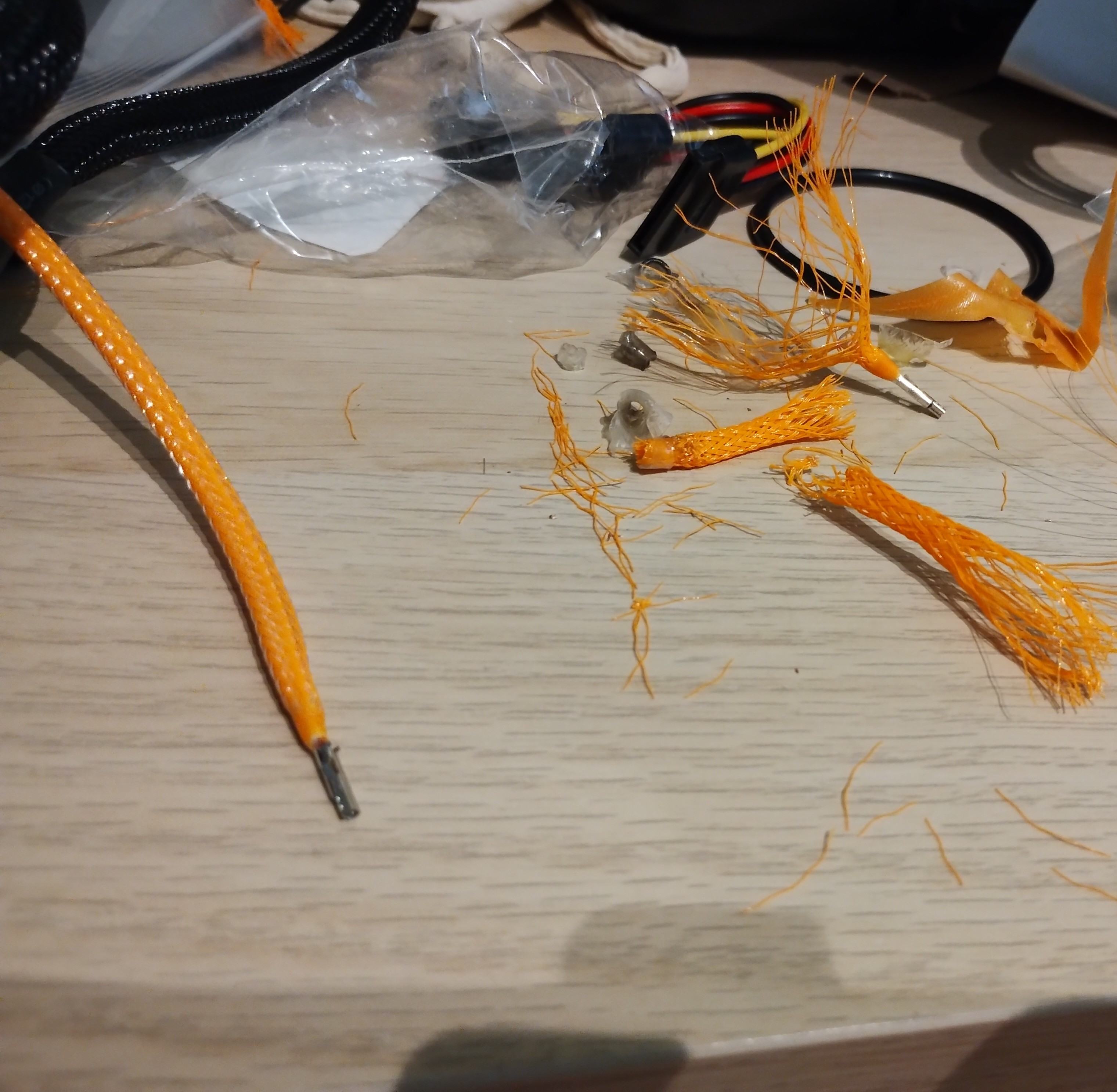 Man man man. 5 Versuche um zu verstehen, dass der Schrumpfschlauch NICHT am Kabel dran bleiben soll. Das Bild bei PCHM demonstriert nicht, dass da kein Kleber ist, sondern der Sleeve selbst geschmolzen werden muss. 🤦‍♂️