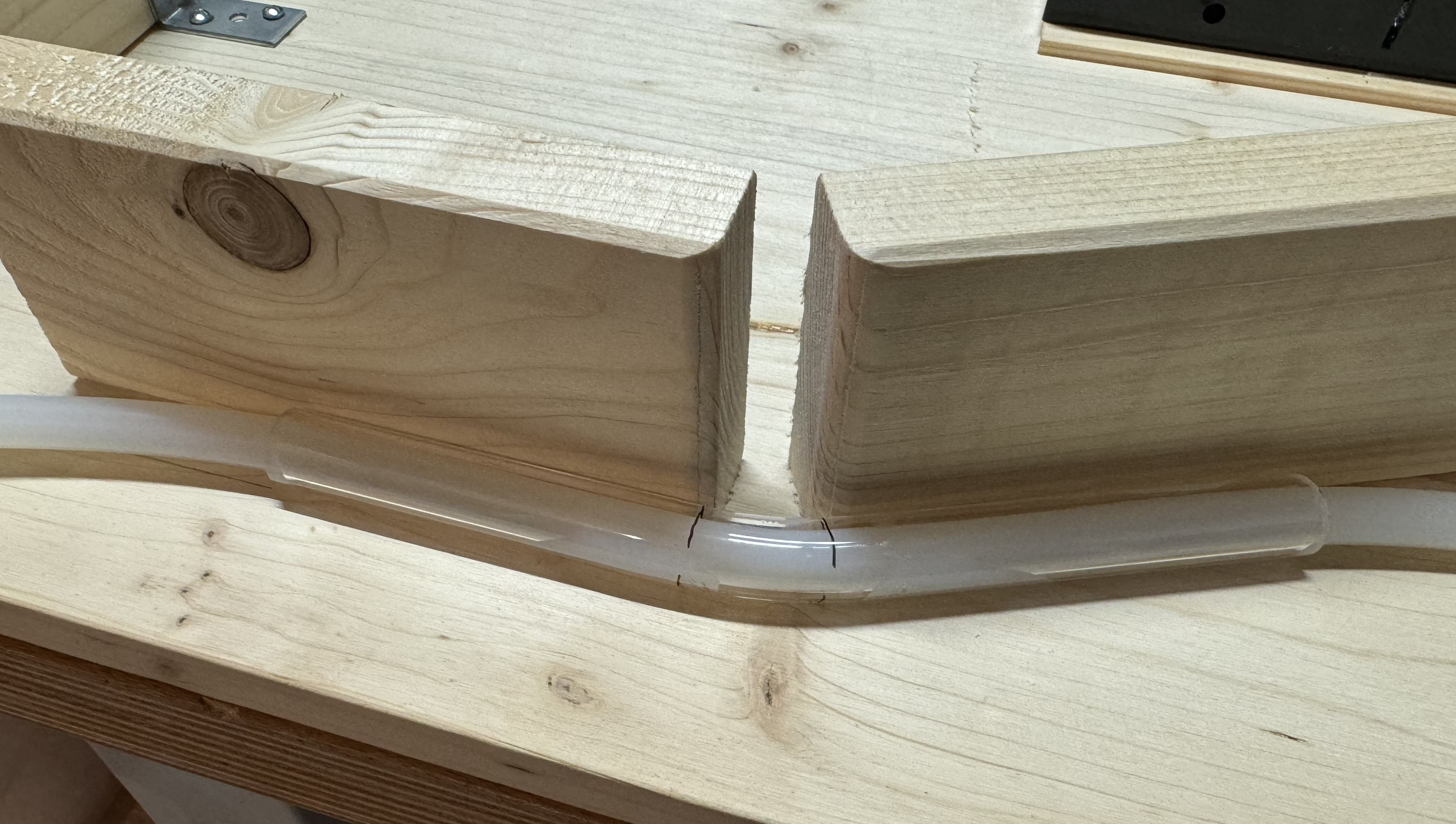 Und da klappt es mit den Kanthölzern deutlich genauer, das der 30°-Bogen im passenden Winkel zum 90°-Bogen steht: