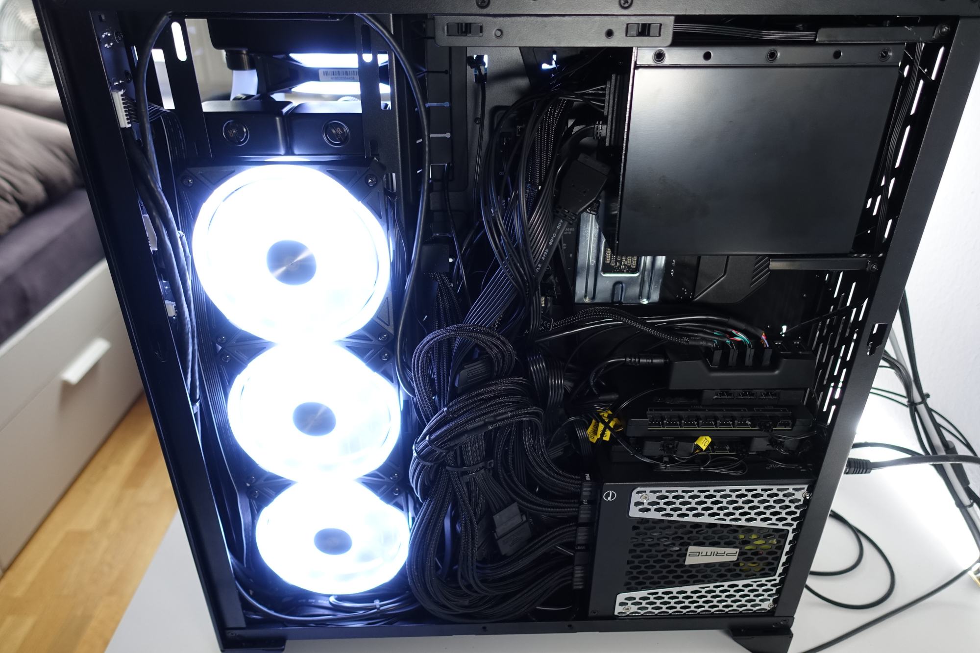 Danke, nein leider habe ich dazu keinen Worklog. Die Rückseite sieht ziemlich chaotisch aus, da ich extrem viele Kabel durch die beiden Netzteile habe. Ich schaue, dass ich noch 2-3 Bilder einstelle ;)