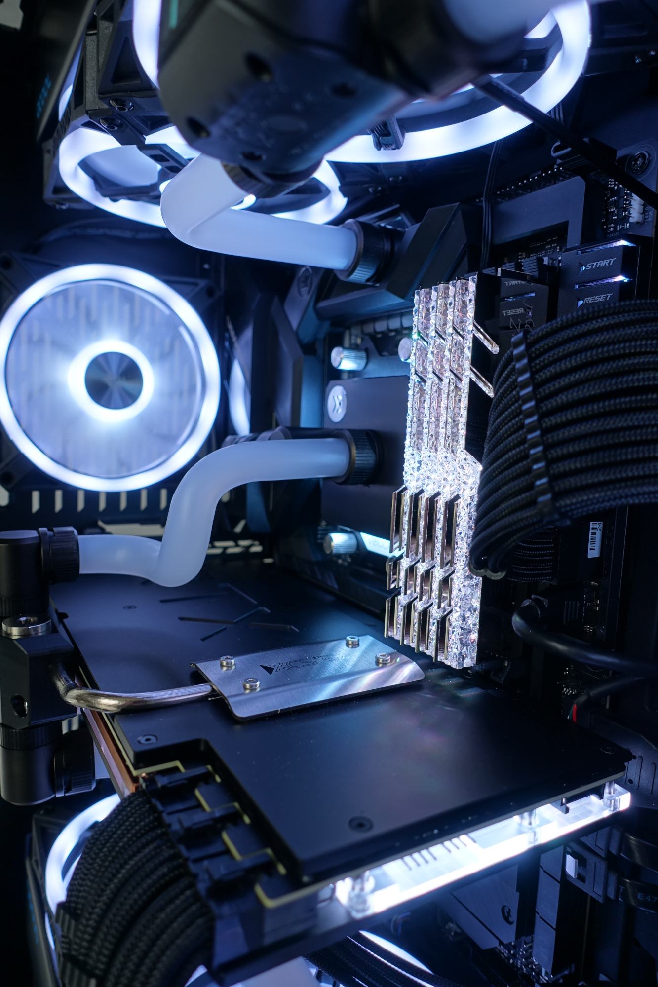 Hi, das sind die RGBpx Stripes von Aquacomputer. Die Stripes sind vorn installiert, und die Lüfter hinten zur Wand.