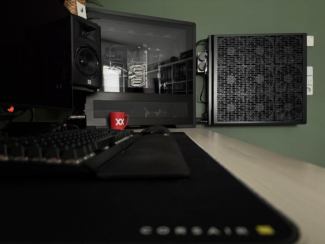 Schön zu sehen das die Wakü-Karten auch vertikal verbaut werden. Mir würde da echt was fehlen wenn ich nicht hier und da mal eine Luftblase beim Weg durch die Wasserkühlung beobachten könnte.