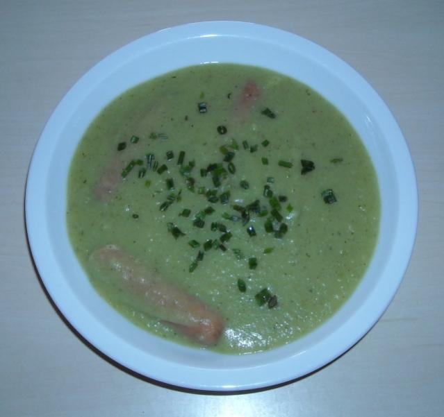 Kartoffel Brokkoli Suppe mit Frühlingszwiebeln, Charlotten, Knoblauch und Würstchen. :)