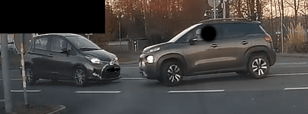 Ich vermute, dass der Citroën-Fahrer einfach dem Transporter hintergefahren ist und wenn es wirklich so ist, wäre sein jetziges Verhalten nicht in Ordnung.