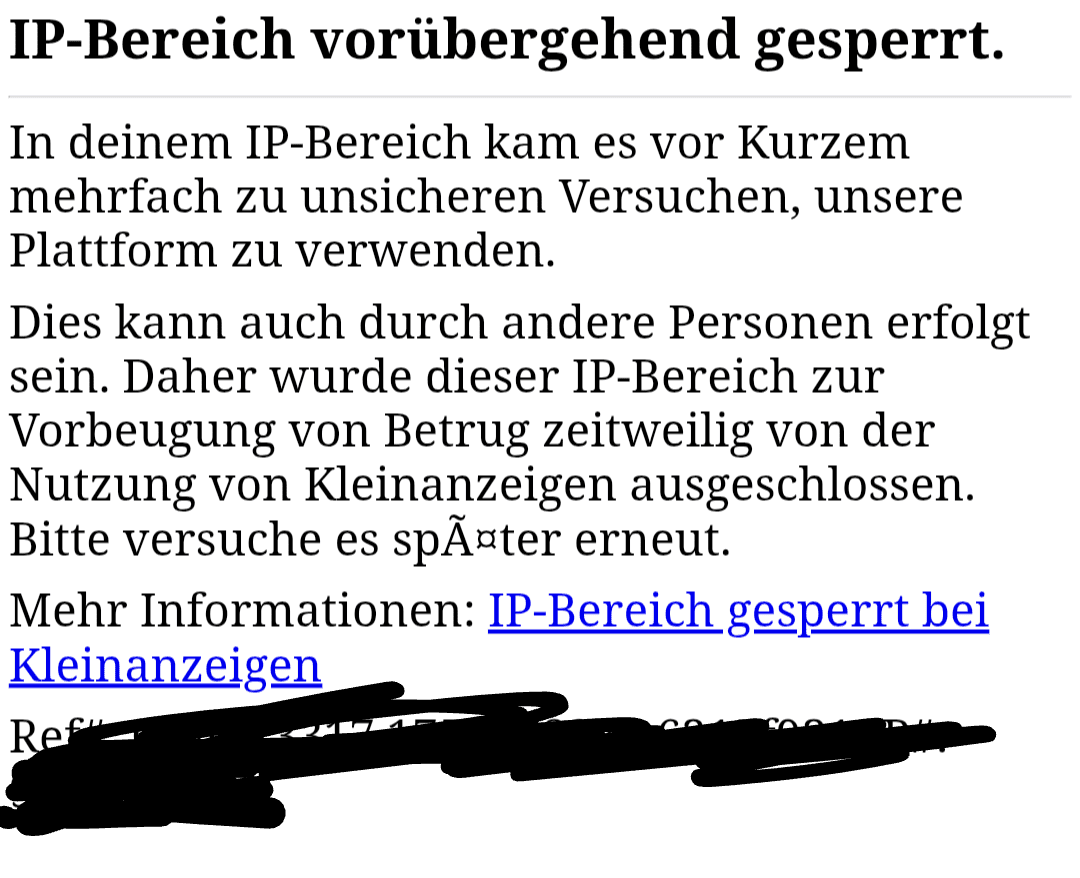 Erst bescheidenes Peering, dann YouTube "Bot Schutz" und jetzt Kleinanzeigen :motz:
