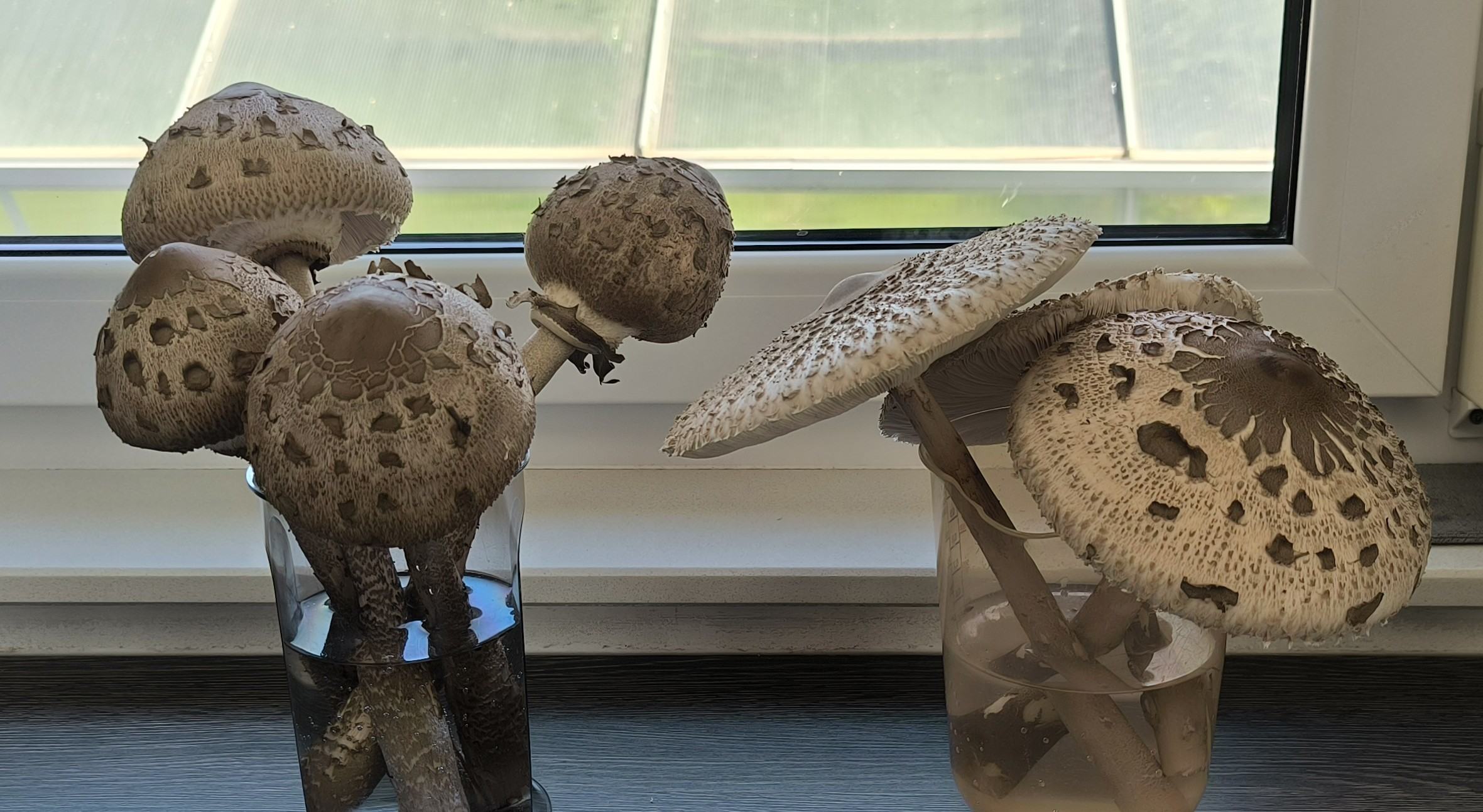 Heute Vormittag Kontrollrunde durch den Wald (zwecks Kupferstecher) und wurde dabei plötzlich und überraschend von diesen Parasolen (Riesenschirmlingen) angesprungen.