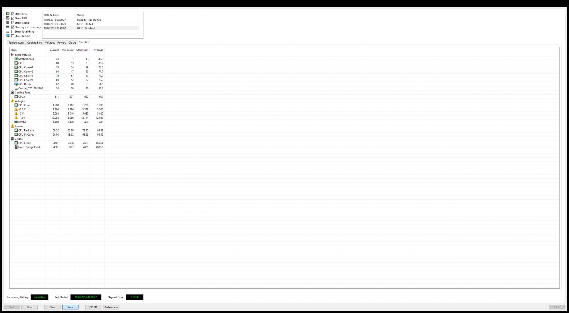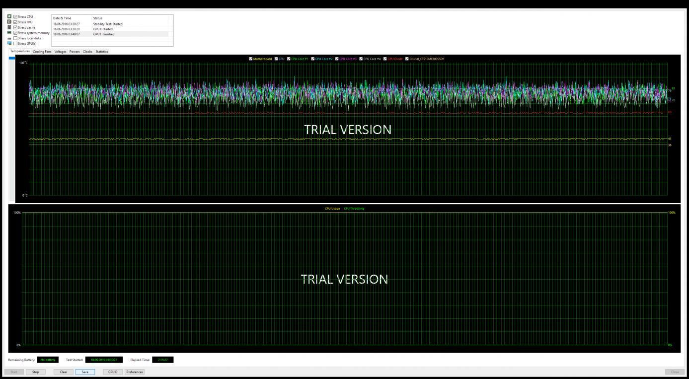 Dann habe ich 7 Stunden einen Stresstest mit AIDA64 und Furmark gemacht.