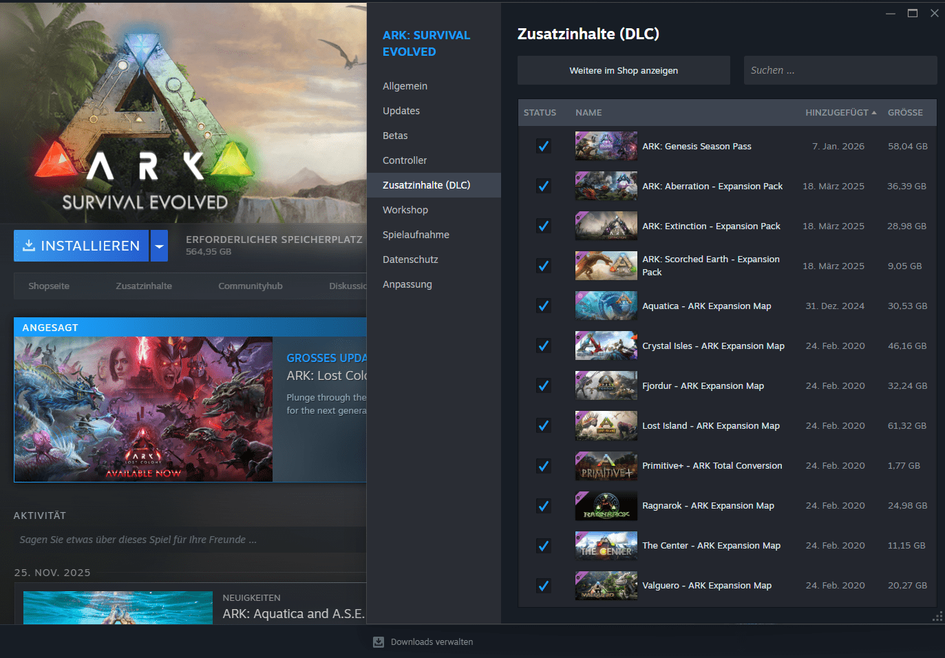 Das grafisch mit UnrealEngine5 aufgepimpte ARK: SA soll laut Epic Installer mit allen DLCs dann auf rund 1200GB kommen (steht zumindest so in dessen Systemvoraussetzungen).