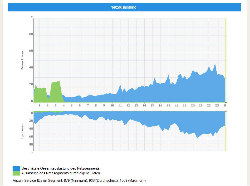 ..auch hier noch viel Luft nach oben trotz max. 1008 Service-IDs im Segment bei ca. 45% (DL) / 65% (UL) im Peak.