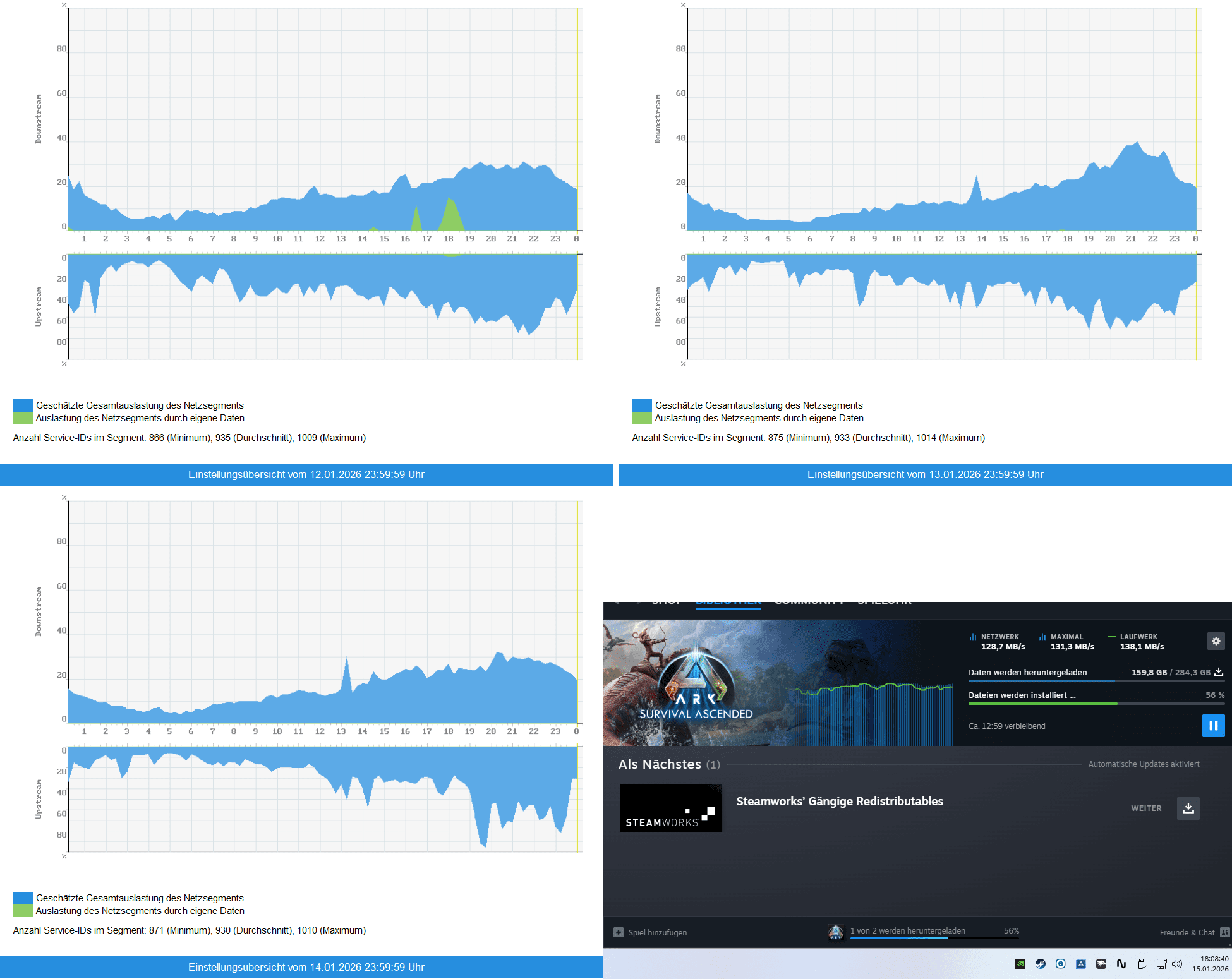 Hier mal Segment Auslastung der letzten 3 Tage und wie der DL aktuell so ist (Steam):