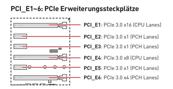 gerade baue ich einen PC zusammen und stehe vor der Frage welche Karte ich am besten wo rein stecke. Es geht um eine Soundkarte und eine M.2 Sata (Samsung 970 Pro) welche auf einen PCIe Adapter kommen soll. Würde es Sinn machen der 970 acht CPU Lanes zu geben, oder reichen die 4 PCH Lanes von ganz unten?