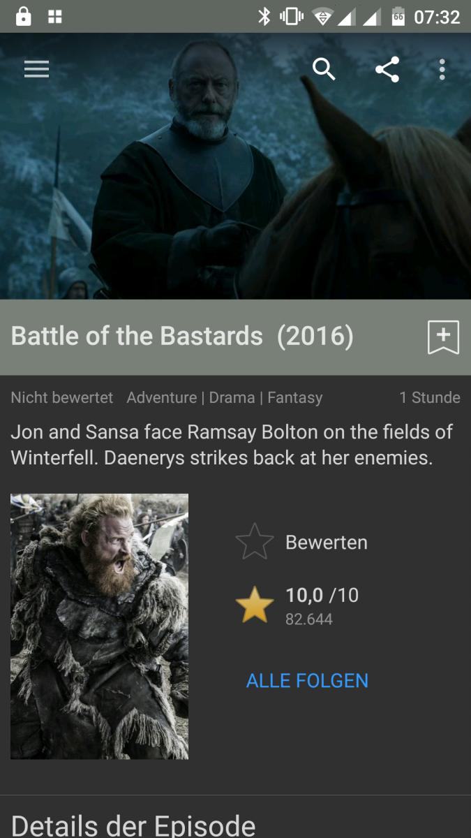 Ich würde über alle Staffeln hinweg und ich bin jetzt glaube ich grade bei der aktuellen Staffel angekommen eine solide 6,5/7 geben. Für mich immer noch eine der besten Serien was Kostüme, Landschaften usw angeht, aber für mich zieht es sich gefühlt einfach wie Kaugummi, ich habe wirklich den Eindruck man verfällt ins Lindenstraßenformat um soviele Episoden wie möglich raushauen zu können, und genauso wie bei genannter Serie nehmen die Fans es dankbar auf, insbesondere wenn die Serie es schafft einen in die Fantasiewelt abzuholen. Ich muss allerdings sagen, dass es bei direkter Auswahl zunehmend mehr Serien schaffen mich zu fesseln und das "ich muss weitersehen" Gefühl zu wecken. Das war bei mir z.B. Penny, das ist bei mir auch Breaking Bad oder Saul gewesen und das ist jetzt auch z.B. Vikings. Vikings würde mir im direkten Vergleich auch gegenüber GoT "gewinnen" sofern man das so sagen darf. Es ist einfach eine schöne lineare Erzählweise und nicht das Szenario-Gehopse und für mich die angenehme Kompaktheit die ich bei Serien schön finde.